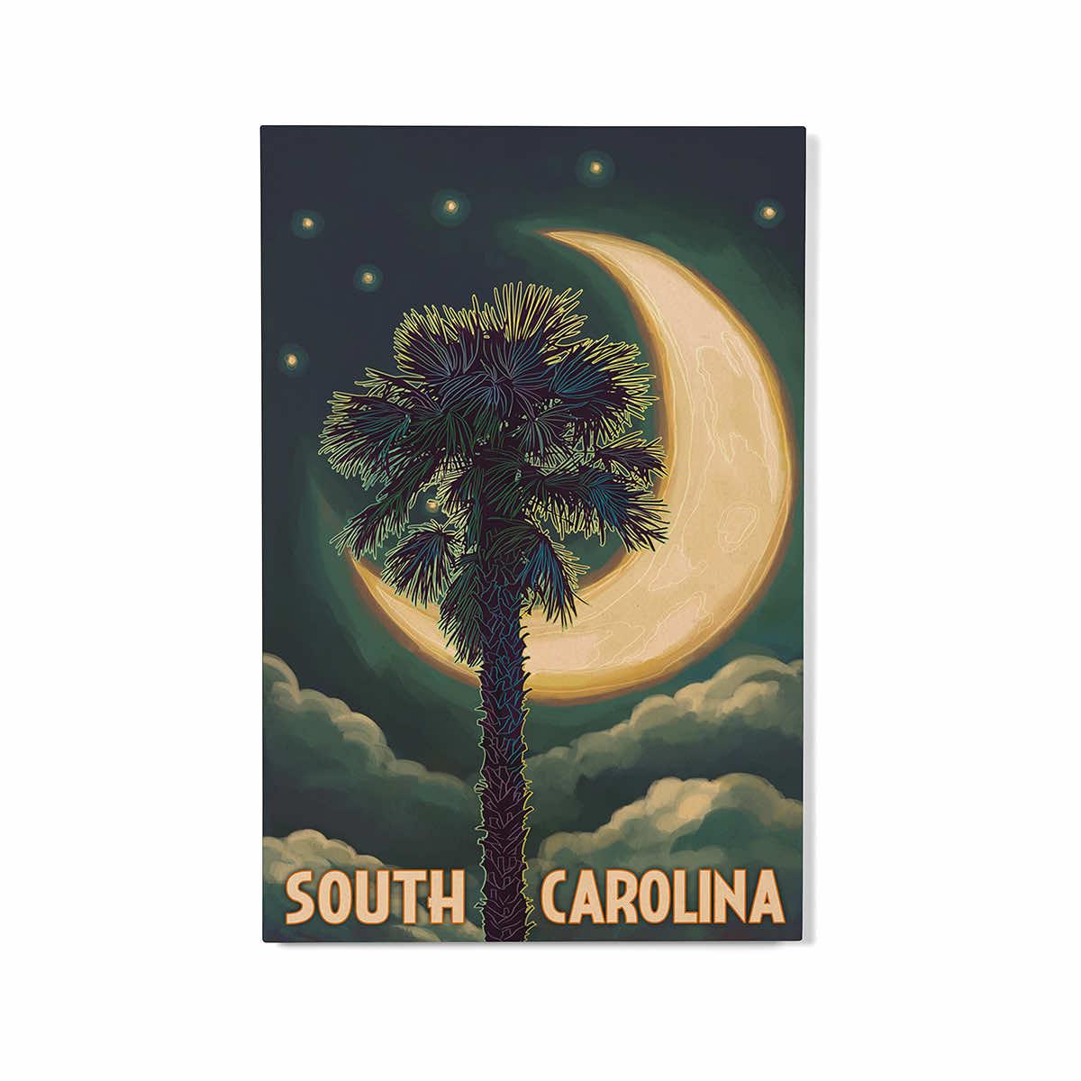 Experience all South Carolina has to offer, then take home a piece of this beautiful state with the South Carolina Palmetto Moon Wooden Magnet from Lantern Press. Made in the USA, this wooden magnet measures 2.5 x 3.5 inches and features the symbols of South Carolina, a palmetto tree silhouetted against a crescent moon.