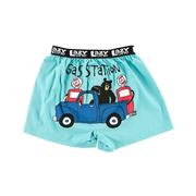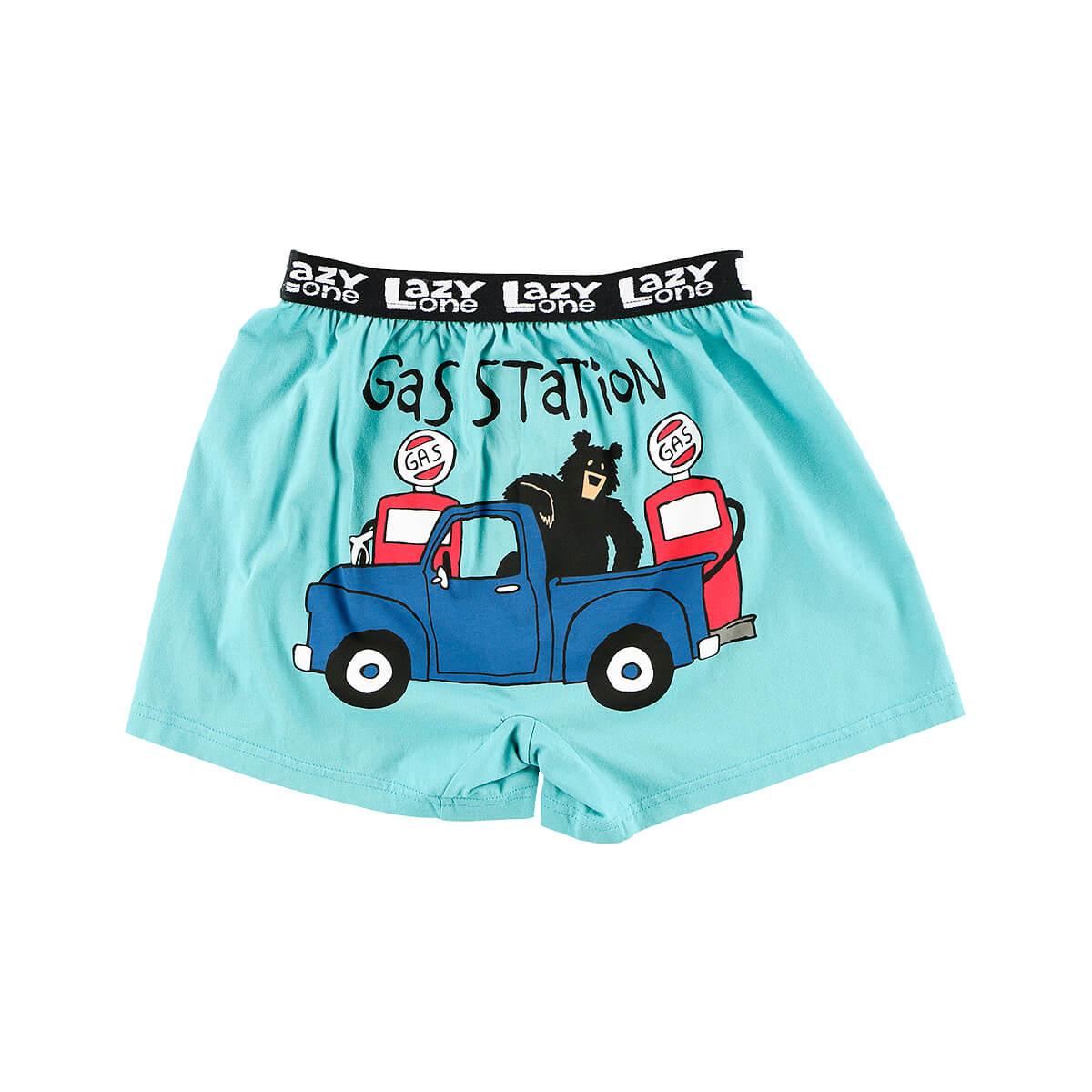 Every boy needs to get their "Gas Station" covered, so what a better way than with some classic comedy! Made from soft 100% combed cotton knit, Lazy One's boxers have a roomy fit with a button fly and an exposed elastic band. It's easy to see why the butt stops here!