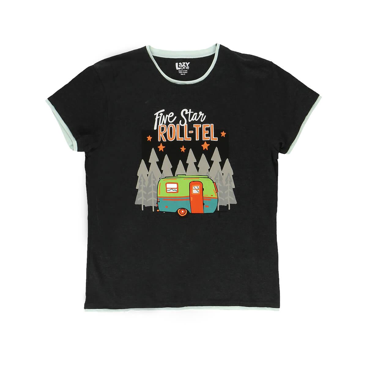 Sometimes you just got to get away from the city and stay somewhere in the wild. With Lazy One's Five Star Roll-tel Women's pajama tee you can get away in comfort and in style. These pajama tees are made from breathable 100% combed cotton for a soft blend of warmth and comfort, each tee features raw-edged trim around the neck and sleeve.