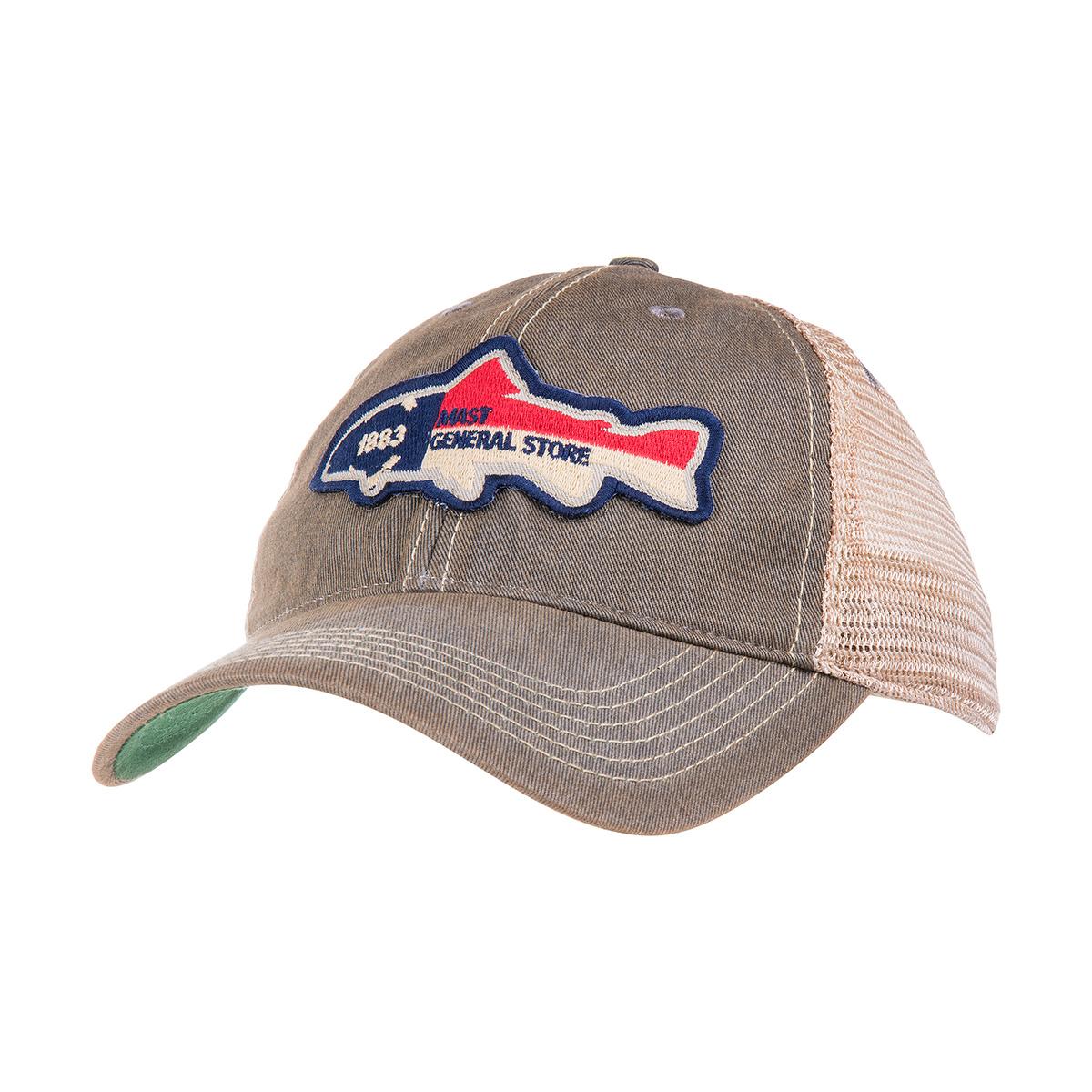 For the fishing enthusiast, collector of caps, and fan of the Old North State and Mast General Store! You won't be able to resist the vintage look and feel of the Mast General Store Fish Flag Trucker with NC Colors. This classic 6-panel hat has mesh sides and back with an adjustable snap closure for a secure fit. Featured on the front is an embroidered patch of a fish silhouette sporting the Mprth Carolina state flag with “Mast General Store Since 1883”.
