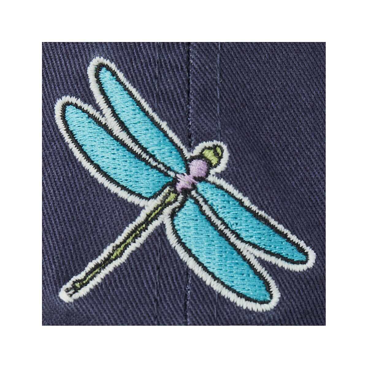 You'll be buzzin' around town in the Life is Good Embroidered Dragonfly Chill Cap, a laidback and unstructured cap that is perfect for on-the-go adventures! This excellent baseball cap is made from garment-washed 100% cotton that is unbelievably soft and comfortable, with an adjustable back for the perfect fit. The vibrant embroidery on the front features a dragonfly, a symbol of new beginnings and transformation. This hat will set your accessories abuzz with style!