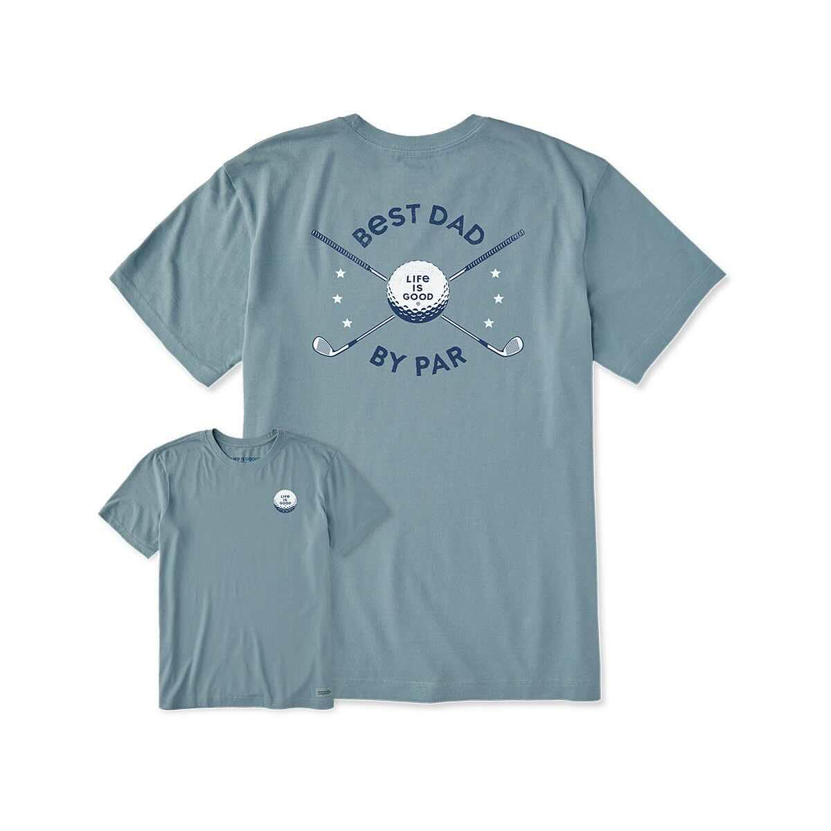 The Men's Best Dad By Par Golf Clubs Short Sleeve Crusher Lite T-Shirt from Life is Good is a lightweight and comfortable men's graphic t-shirt, crafted from a soft, garment-washed cotton blend for a lived-in feel, featuring a fun golf-themed design, perfect for golf-loving dads. This dad golf t-shirt boasts a classic fit, ribbed neckband, and short sleeves, providing everyday comfort and style. The Crusher Lite fabric is designed to be lightweight and breathable, making it ideal for warm weather and activewear. Show your appreciation for the best dad with this humorous and stylish men's cotton tee, perfect for Father's Day, birthdays, or any occasion.
