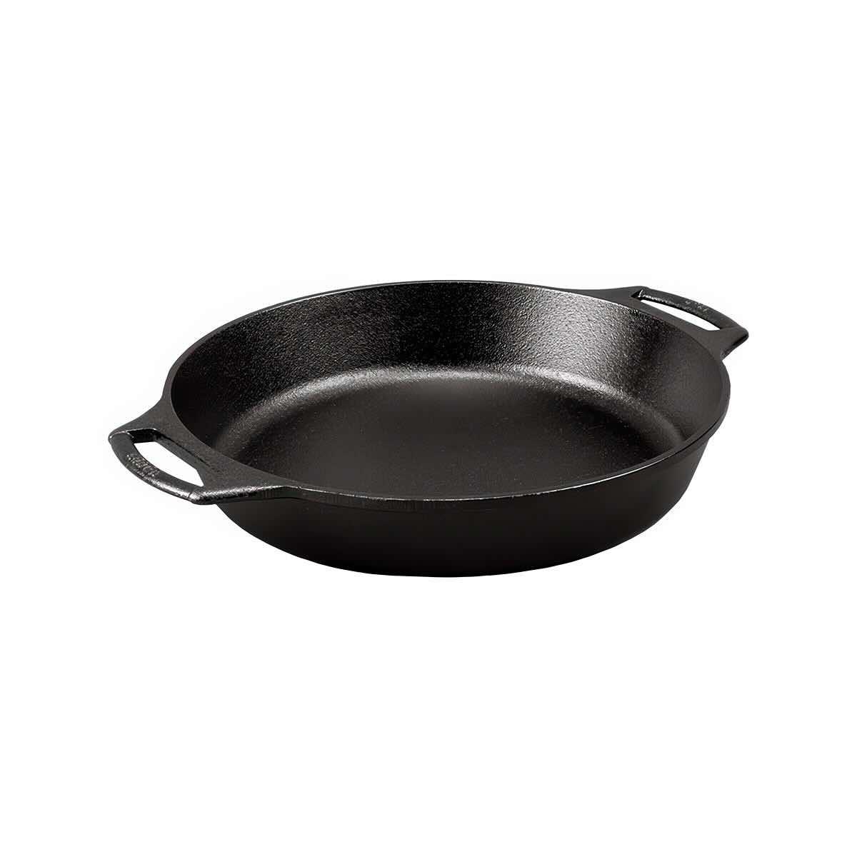 The original, classic skillet has been reinvented as the 10.25-inch Cast Iron Baker's Skillet from Lodge for bakers around the world. Crafted in America with iron and oil, its naturally seasoned cooking surface won't dent, bend, or warp at high temperatures and is ready to help you bake delicious, shareable moments. It provides excellent heat distribution and retention for consistent, even baking. Seasoned and ready to use, this Baker's Skillet is ready to fire up biscuits, bread, pies, and any other tasty recipes you throw in it!