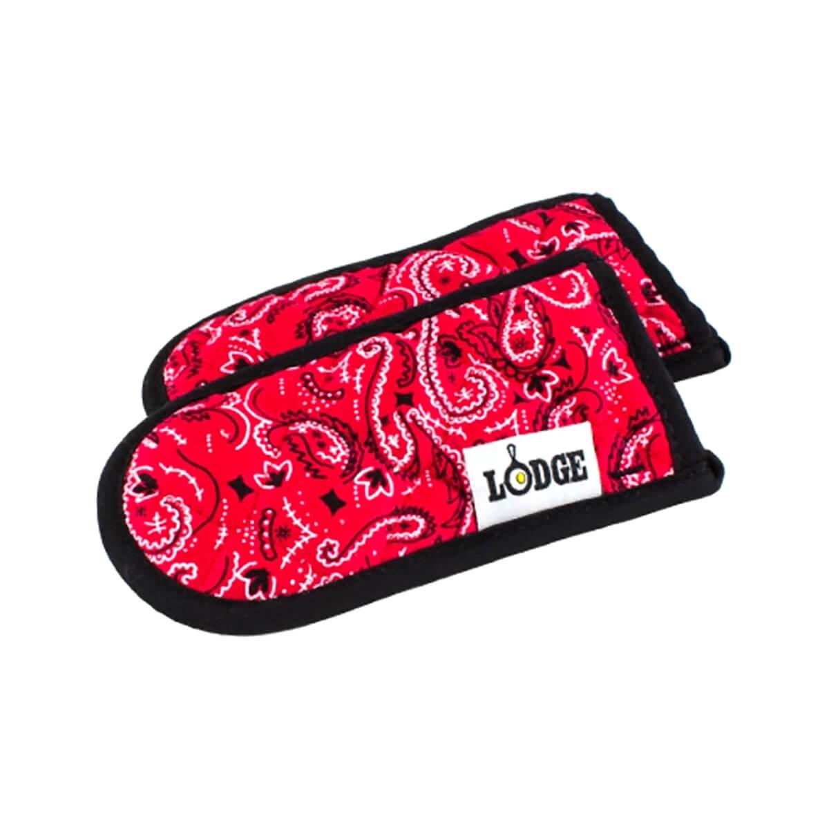 Add some style, comfort, and safety to your cast iron cooking experience with this 2-piece set of Hot Handle Holders featuring a paisley bandana design from Lodge. Machine washable and made in the USA.