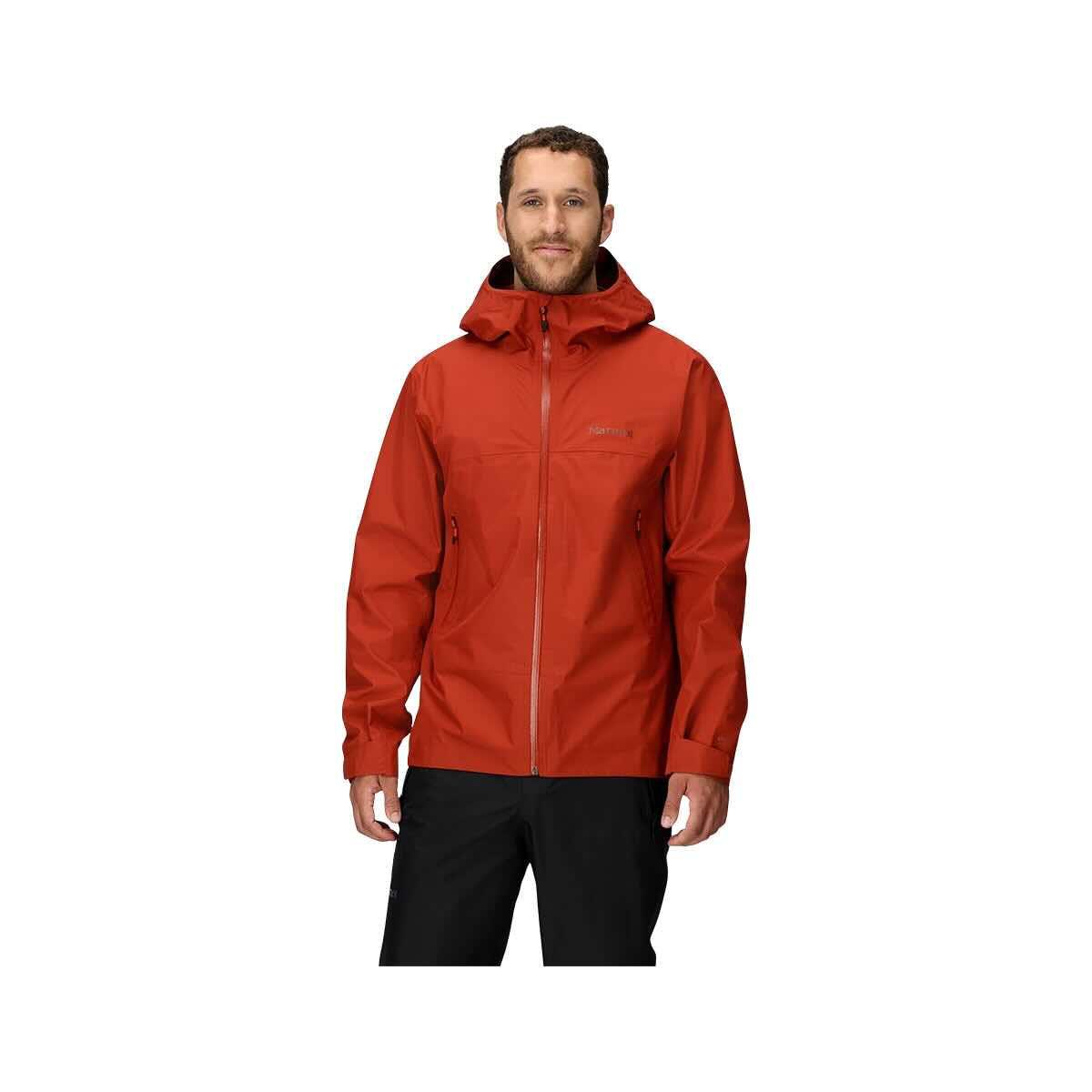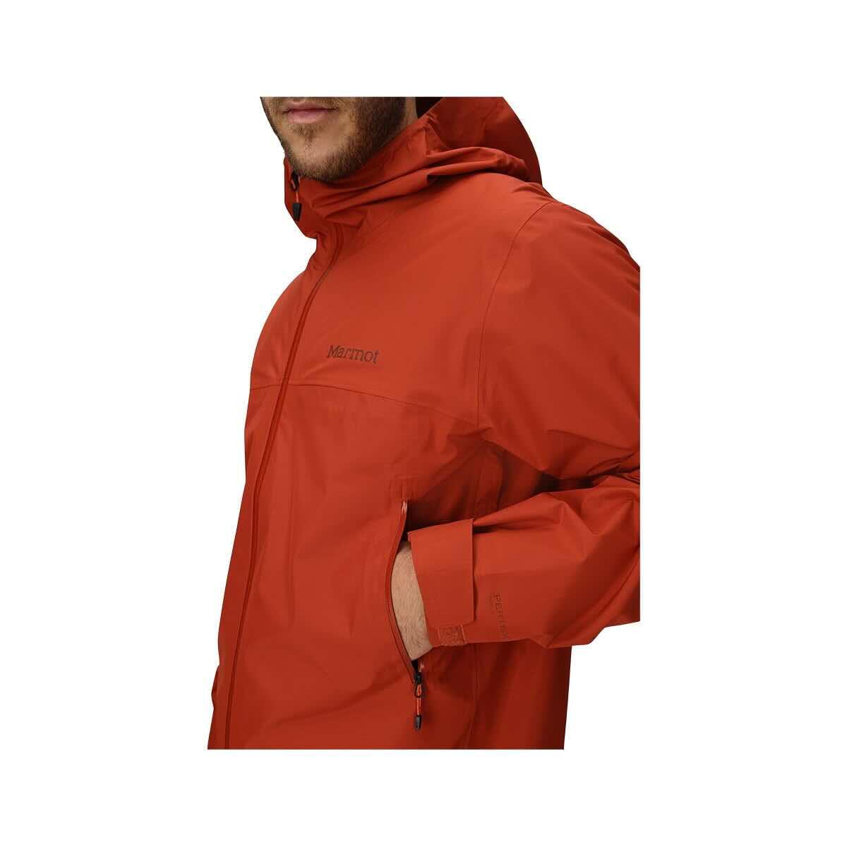 Find your journey in the Men's Minimalist Pertex Rain Jacket from Marmot, which is made from sustainable, 100% post-consumer recycled polyester that weathers the elements and keeps the moisture at bay. The Pertex® Shield Revolve fabric is designed to be durable, waterproof, windproof, and breathable with a seam-taped construction for complete leakproof protection. It features a fixed hood with adjustability for a custom, just-right coverage. The zippered hand pockets are water resistant and made to keep the water out and the essentials dry. The full-zip front and adjustable pit zips offer temperature regulation and great ventilation. From snow to downpour, drizzle to wind, the Minimalist Pertex Rain Jacket breaks up the elements while keeping the adventure going strong!
