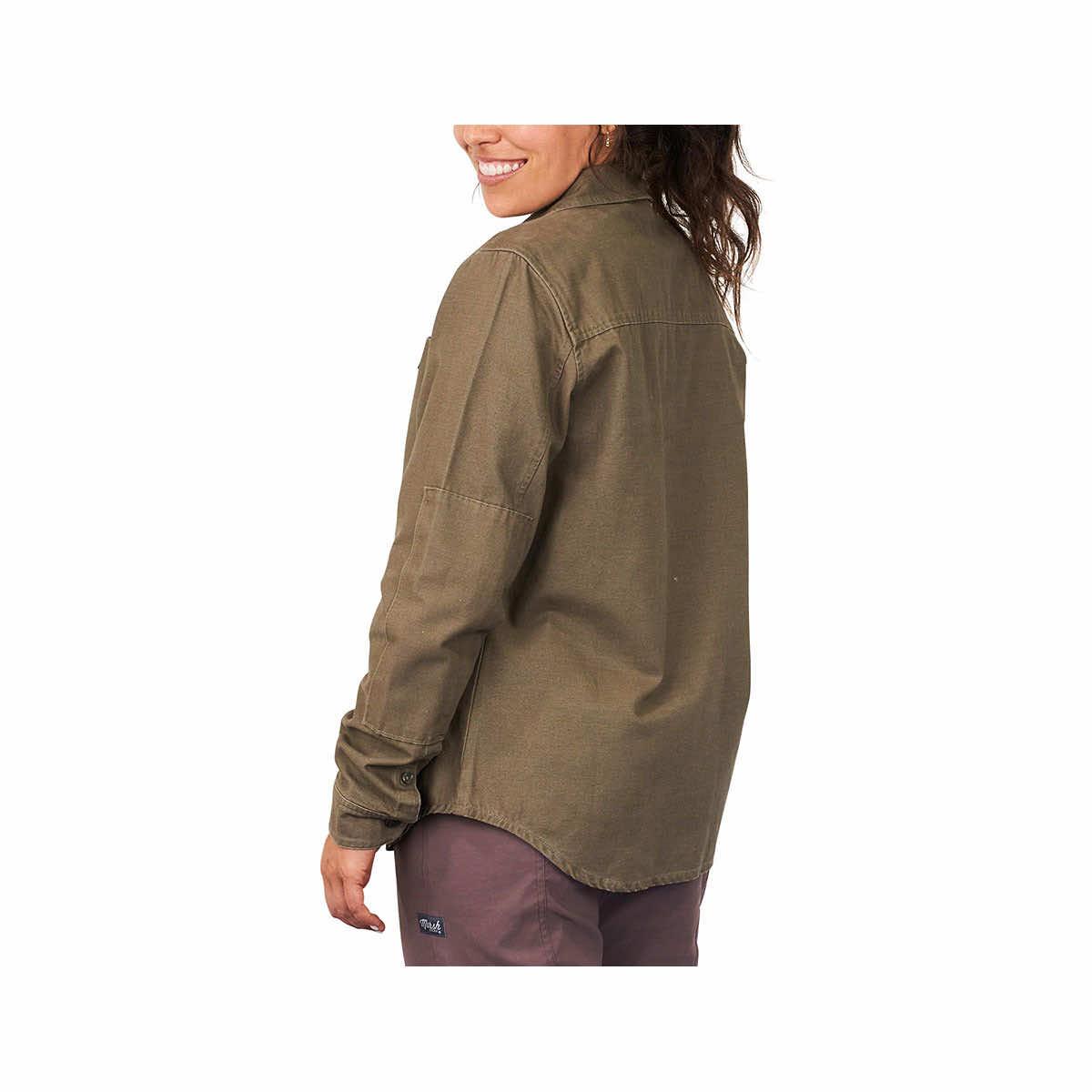 Named after the grandfather of Marsh Wear’s founder, the Women's Delano Shacket was inspired by the test of time. A piece of clothing that was rugged enough for a day of chores and stylish enough up to pair with your “date” shoes for a night out on the town. Constructed of a durable washed canvas for that coveted broken-in feel while sporting custom antiqued logo buttons and multiple organizational pockets, the Delano Shacket screams rugged and versatility.