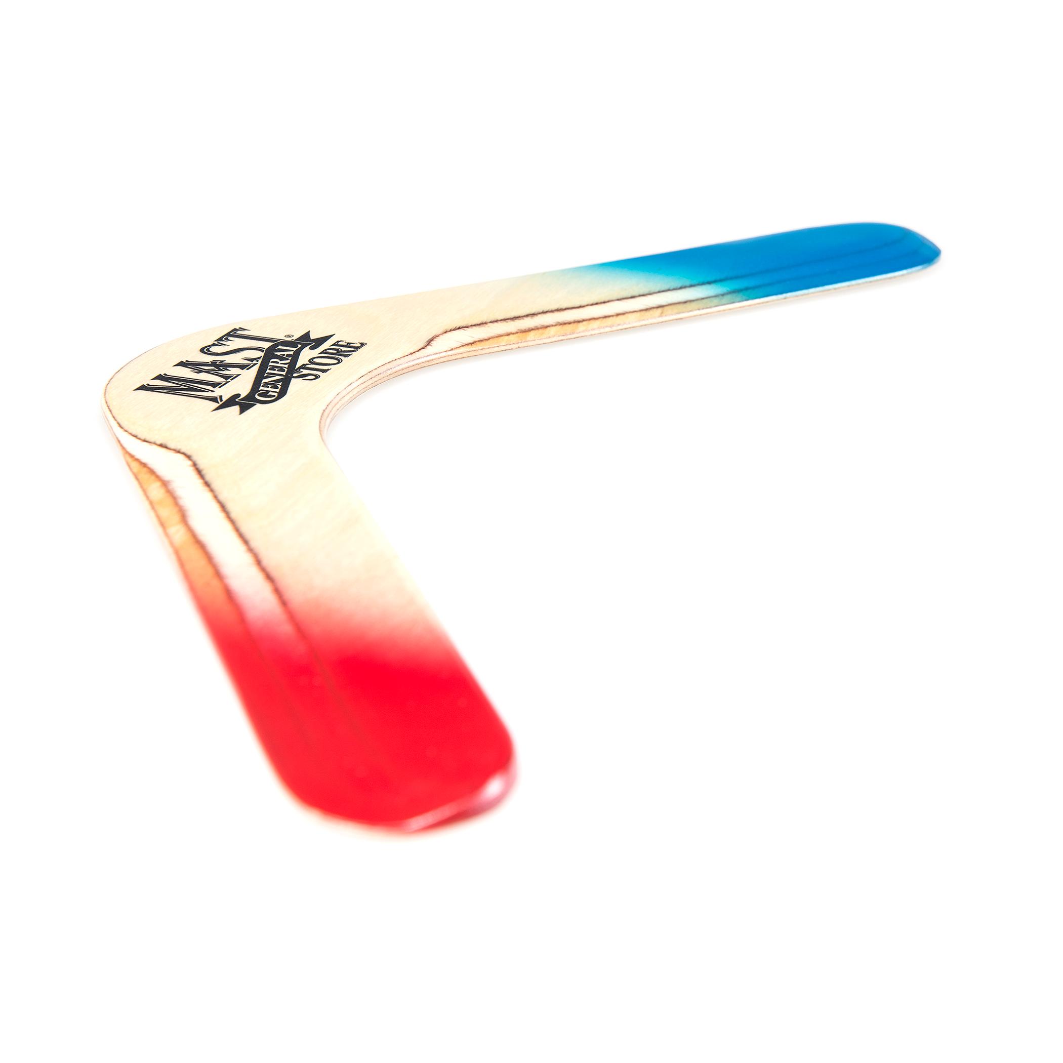 When the sun comes out to play, so should your family! Kick off the fun with our Mast General Store Patriot Boomerang. Made right here in the USA, this traditional-styled boomerang can fly about a distance of 25 yards. This flying toy is great for enjoying at the park or your own backyard, just be careful of bystanders. So give it a nice throw and watch it return right back to your hand.