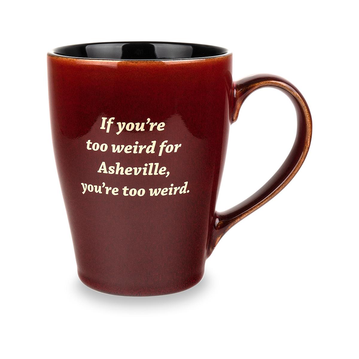 Quote Mug reads, "If you're too weird for Asheville, you're too weird."