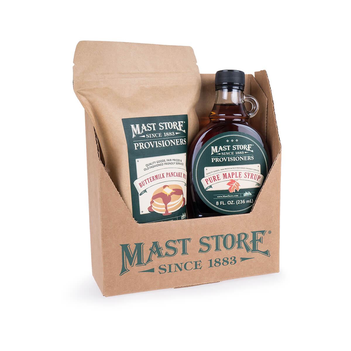 Fresh buttermilk pancakes drizzled with maple syrup truly is the most important meal of the day. Now you can gift this delightful breakfast with our Mast Store Provisioners Breakfast Gift Box. Including a 12-ounce package of Buttermilk Pancake Mix and 8-fluid ounce bottle of Pure Maple Syrup, this gift box has everything they need for a filling, sweet start to any day.