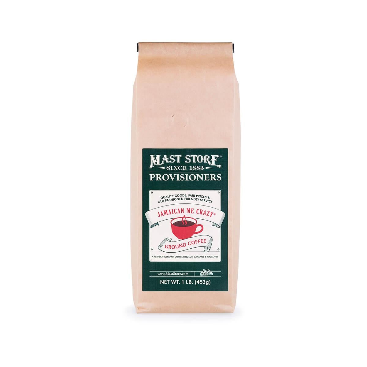Our Mast Store Provisioners Jamaican Me Crazy® Ground Coffee is a delicious island blend of Kahlúa, caramel, and hazelnut that has quickly become our most popular flavored coffee. Roasted in Greenville, South Carolina by West End Coffee Company, which specializes in providing Fair Trade Organic Coffee. Hey, mon! Get a move on, and grab ya a bag!