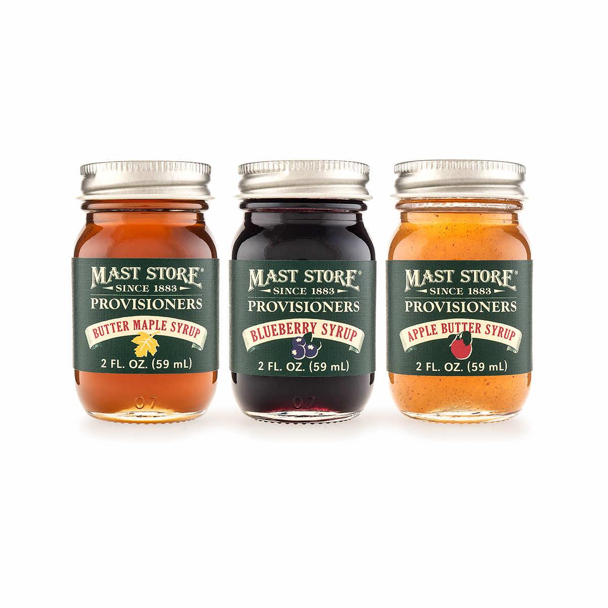For the person in your life whose tastebuds change from day to day, our Mast Store Provisioners Mini Syrup Gift Set is here to settle things with three tasty options. This gift set includes three 2-ounce mini jars of our Mast Store Provisioners Butter Maple Syrup, Mast Store Provisioners Blueberry Syrup, and Mast Store Provisioners Apple Butter Syrup. Drizzled over waffles, pancakes, ice cream, and more, the only thing left to decide what is the flavor of the day.