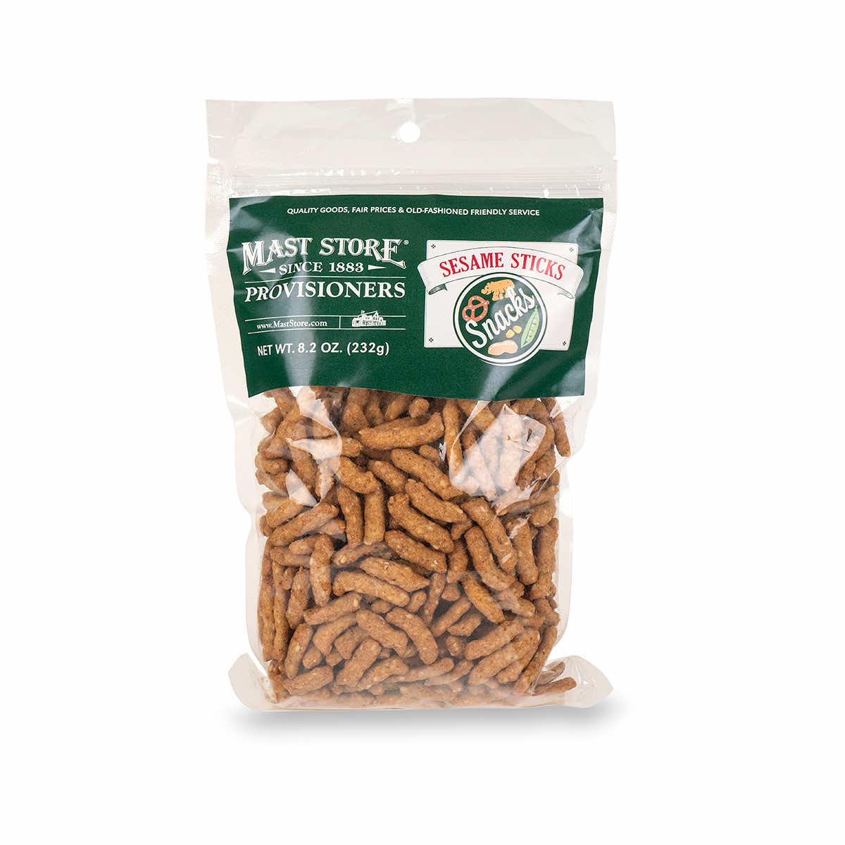 Classically crunchy, these sensational sesame sticks from Mast Store Provisioners are the go-to snack you need in your pantry! Timeless and tasty, these delicious tidbits are great by the handful and even better when shared. When you're on the go and need a savory pick-me-up, reach for these salty morsels and you'll always find satisfaction!