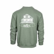 Pick up a super-soft cotton Original/ Annex Mast General Store Crewneck Sweatshirt to preserve your memories of our iconic storefront in the heart of Valle Crucis. This classic crewneck sweatshirt features a detailed illustration of the Original Mast General Store on the front and the Annex Mast Store on the back. Located in beautiful Valle Crucis, North Carolina, this cozy pullover is just what you need to remember this Southern Blue Ridge jewel! Whether you're a lifelong resident or just passing through, keep the Valle and Mast General Store close to your heart. It isn't a trip to Valle Crucis without a stop at the marvelous Mast General Store!