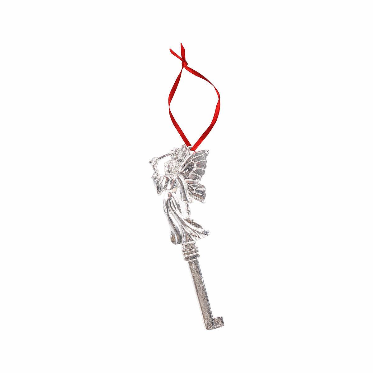 Beautiful craftsmanship that will last a lifetime is what makes up this stunning pewter Christmas ornament. A beautiful fairy perches on top of an old-fashioned key, forever molded in high-shine silver pewter. Perfect for Tooth Fairy traditions year round or a touch of magic on your Christmas tree!