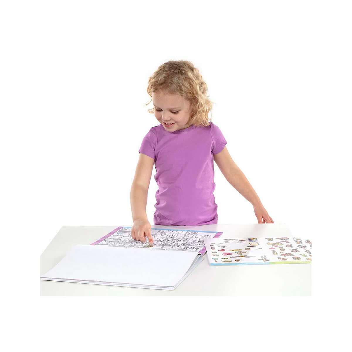 - Seek and find sticker pad with town scenes to color and stickers to match to hidden objects