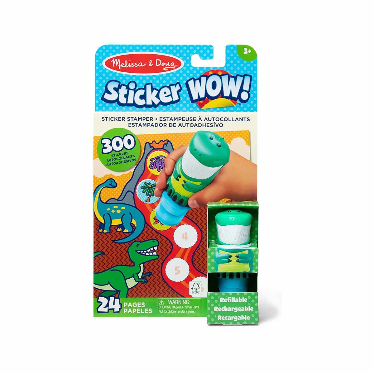 The Sticker WOW! Dino Activity Pad and Sticker Stamper from Melissa & Doug is a whole new way to play with stickers! Let the adorable, collectible Olive the Dinosaur stamp, stamp, stamp its way through 24 pages of fun-filled, dino-themed counting, matching, and search-and-find activities. The refillable sticker stamper comes pre-loaded with a sticker stack of 300 assorted stickers – with 100 unique designs in every stack, each sticker is a surprise! Easy-to-remove stickers and the convenient on-the-go format with built-in sticker stamper storage make Sticker WOW! a great mess-free travel activity. The Sticker WOW! Dino Activity Pad and Sticker Stamper promotes fine motor skills, encourages creative play, and it’s satisfying, fidget fun!