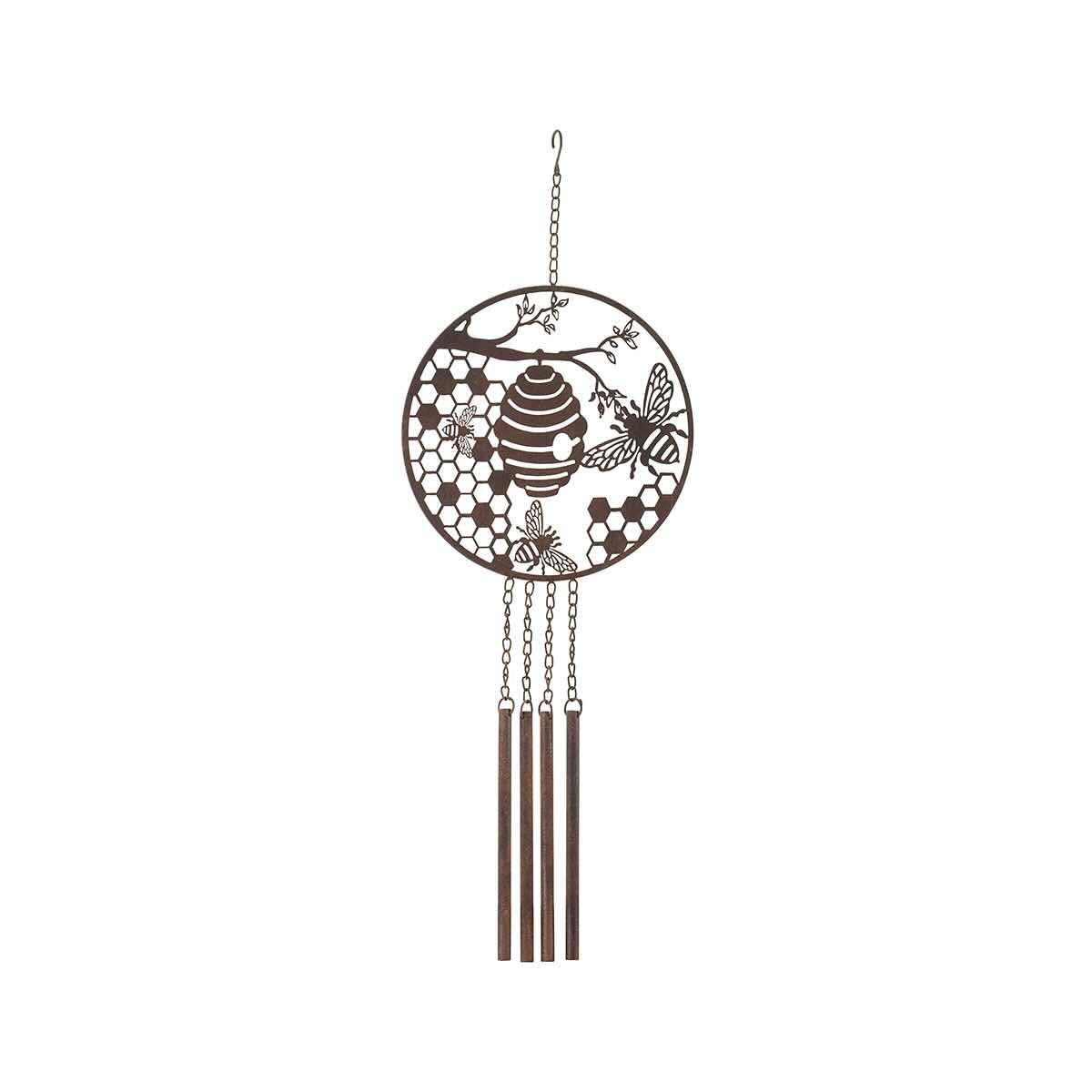 Add charming sounds and whimsical style to your garden with the Bee & Hive Metal Windchime from Melrose, a delightful piece of outdoor decor crafted from durable metal featuring a sweet bee and hive motif that captures the essence of nature. Listen to the gentle music as the breeze brings this lovely windchime to life, with its detailed bee and hive design serving as an eye-catching topper. Made from sturdy metal, this piece of whimsical garden art includes coordinating metal bells or chimes below that produce sweet, tinkling sounds, adding a relaxing ambiance to any outdoor space like your porch, patio, or garden trellis. The intricate details and pleasant sound make this bee windchime a truly buzz-worthy addition to your home.