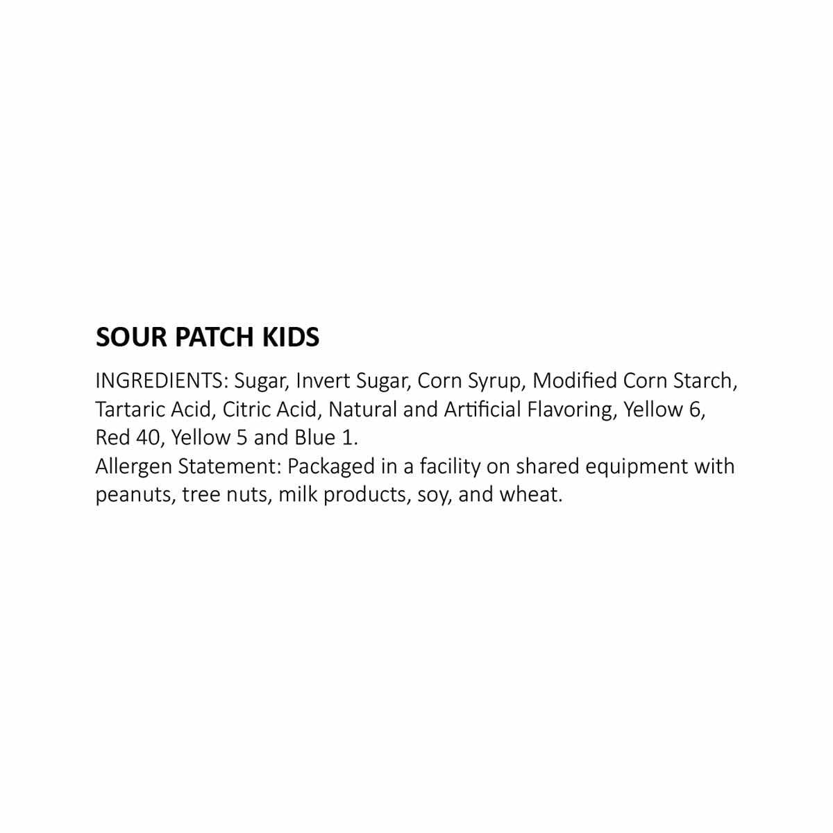 Soft and chewy Sour Patch Kids will pucker your lips. Dusted with a coating of sour sugar, these candies will give your taste buds a zing, but wait it out for a sweet finish. Assorted fruit flavors.