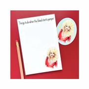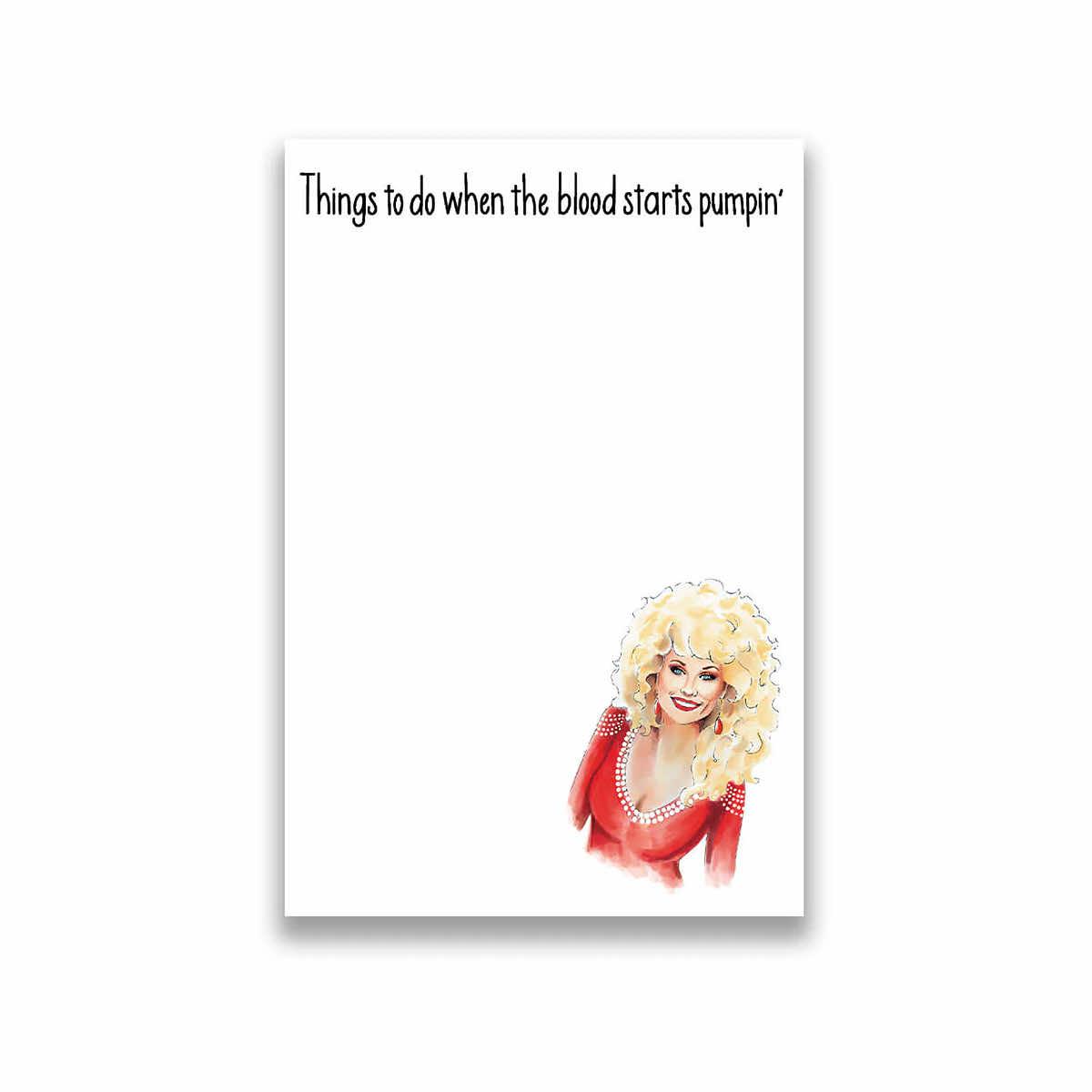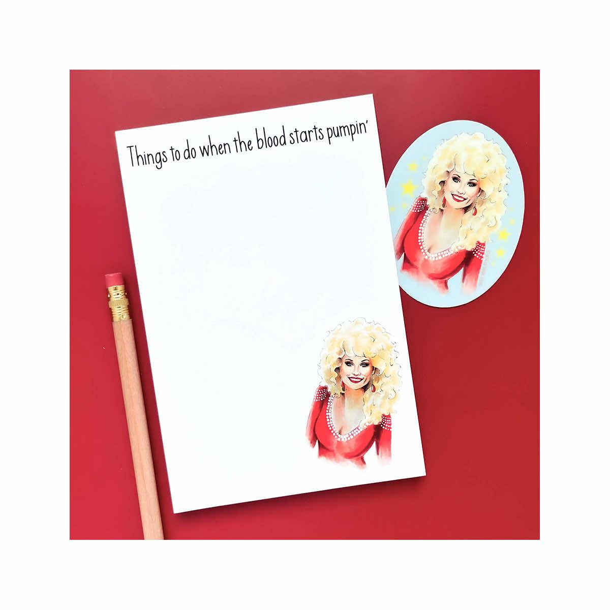 Take a note and scribble down your thoughts with the Dolly Notepad from Morgan Swank Studio. You'll love the Dolly Parton theme with an image of Dolly in the bottom corner and "Things to do when the blood starts pumpin'". The 50 sheets of paper are great for making a checklist, jotting down your to-do's, or just putting pen to paper with ideas.