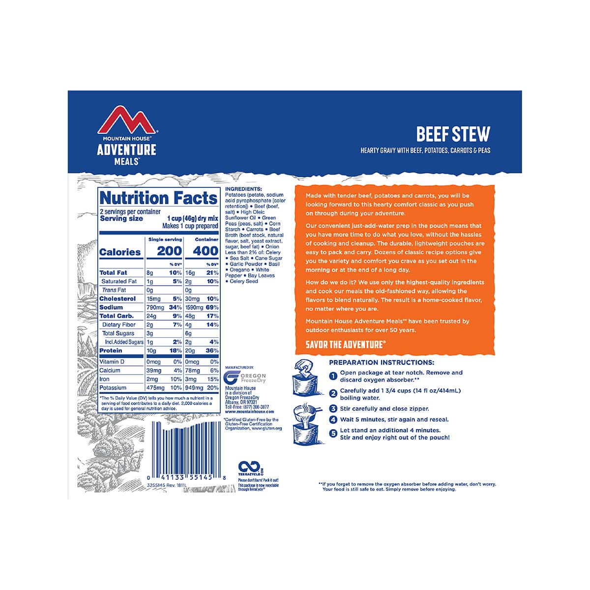 Fuel your adventure seeking desires with a hearty meal, and warm up this Beef Stew from Mountain House after a day of exploring the backcountry or racking up miles on the trail. Simply stir in 2 cups of boiling water, let stand, and enjoy it straight out of the pouch! Work hard and eat like a champ.