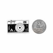Capture your memories in style with the Retro Camera Camp Scene Mini Sticker from Nice Enough Stickers! This vintage-inspired decal features a black-and-white illustration of a retro rangefinder camera. Made in the USA from vinyl and laminates, this sticker is weatherproof and waterproof to stand up to elements anywhere. Stick it on your laptop or cellphone to add a touch of nostalgia to your workspace. The perfect sticker for Fuji and Leica camera lovers.