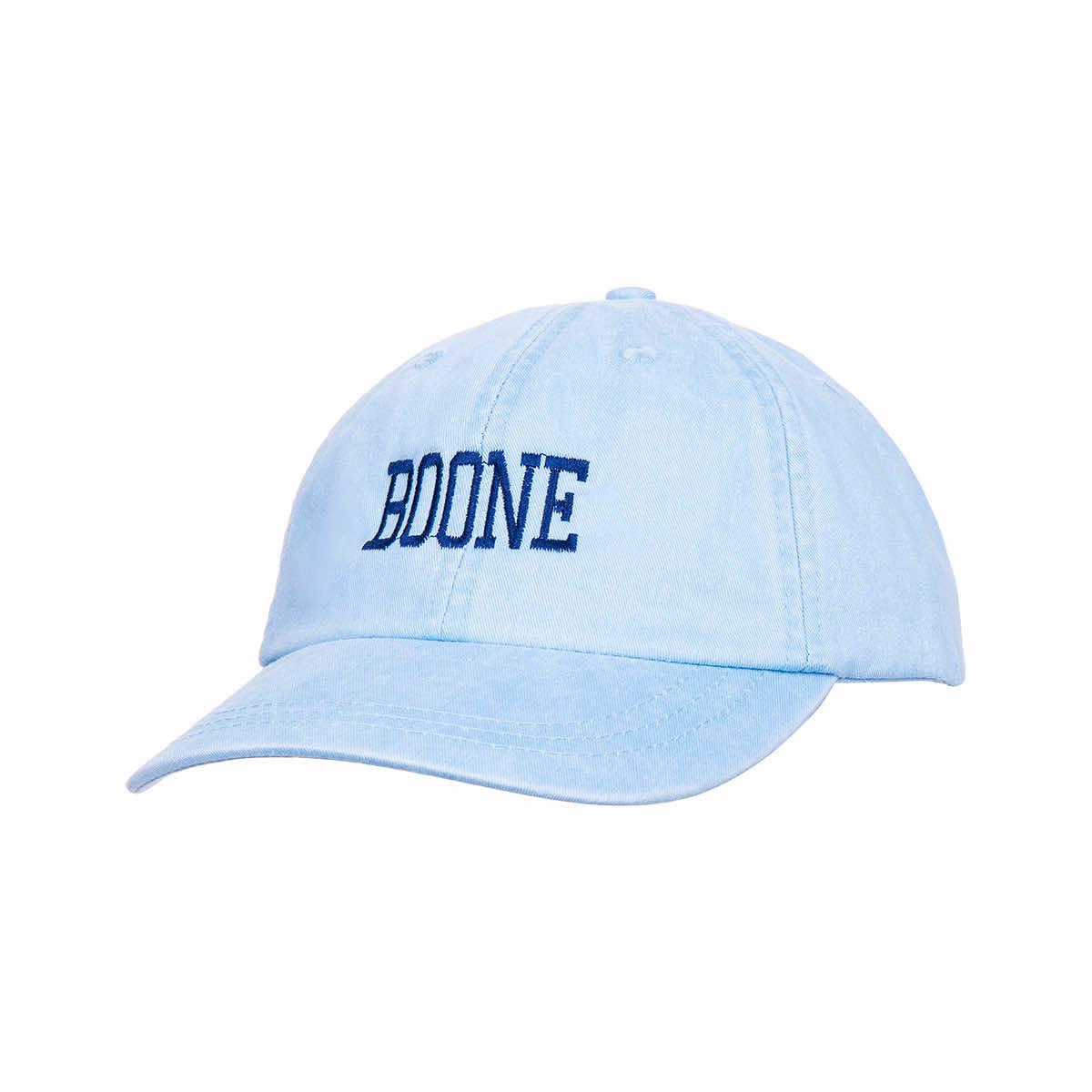 Cap off your adventures in Boone, North Carolina, in the trusty and terrific Boone Embroidery Adams Ballcap, a classic, 6-panel hat with style and comfort to remember your time exploring the Blue Ridge Mountains. The shell is made from 100% cotton with a 100% nylon mesh lining to keep your dome feeling cool and breezy wherever you wear this cap. "Boone" is embroidered on the front crown with an adjustable leather back strap to deliver a perfect, just-right fit. From trekking on trails, floating the river, and exploring the Mast General Store, grab your Boone Embroidery Adams Ballcap and soak up the memories in Boone!