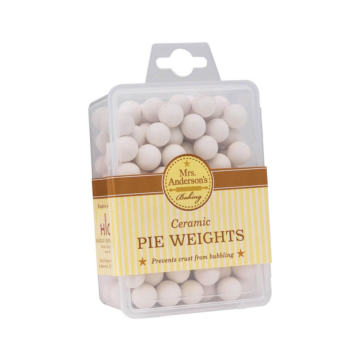 - Mrs. Anderson's Ceramic Pie Weights bake empty pie shells, known as blind baking, without them shrinking, bubbling or buckling