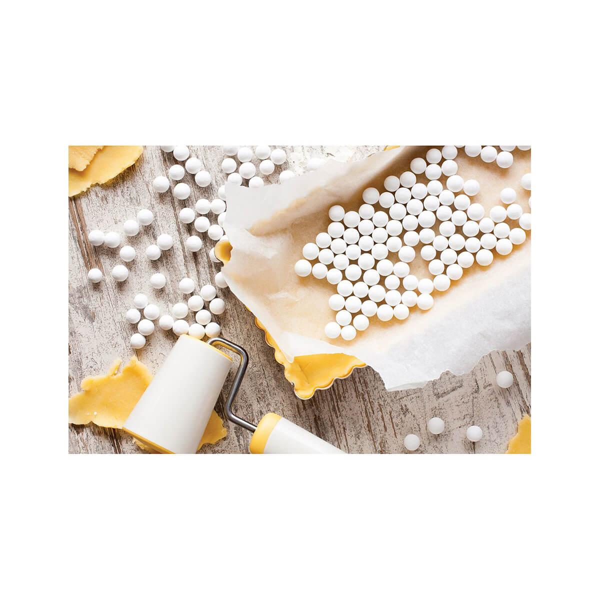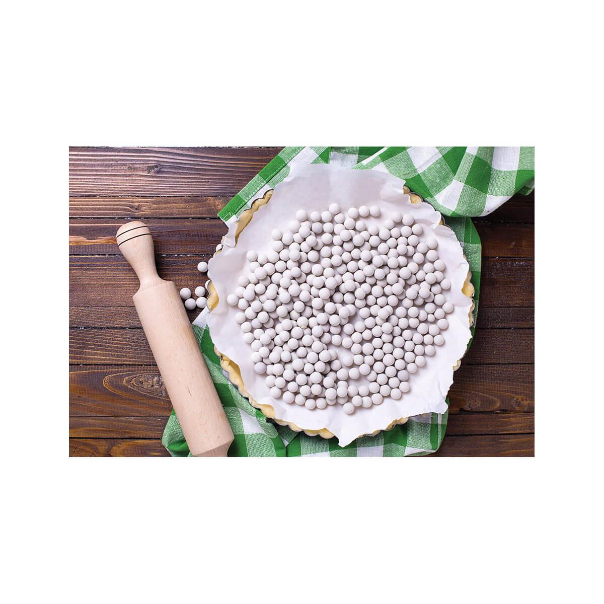- Individual beads are easy to place and arrange as needed; effectively weighs down pie dough to keep bubbles from forming and transfers heat evenly