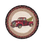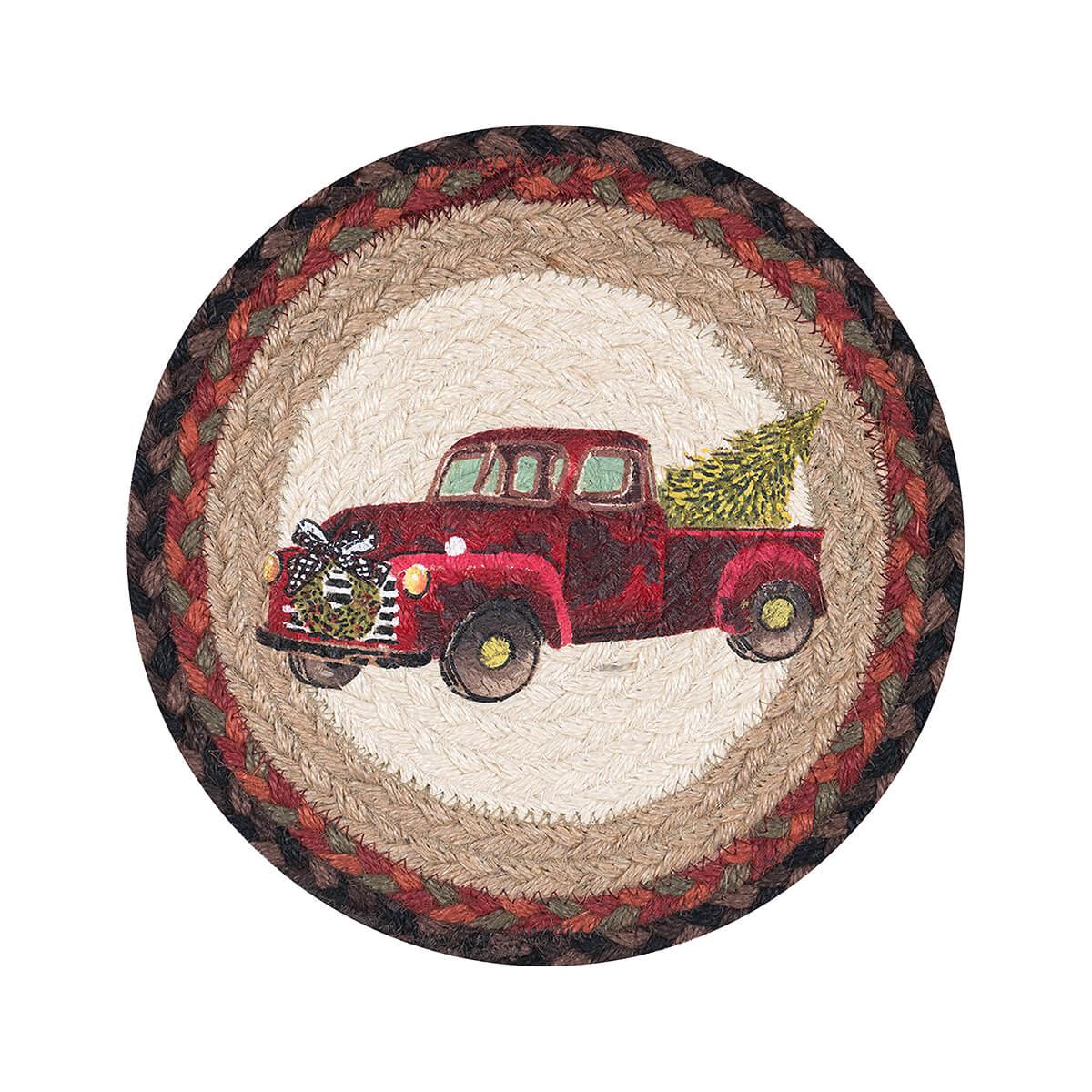 Show off your holiday spirit from your kitchen to the dining room table to the coffee table in the living room with this Christmas Truck Trivet from Capitol Earth Rugs. Made of 100% natural jute, this round trivet features a 10-inch diameter and a graphic by Sandy Clough of a red pickup truck with a Christmas tree in the back.