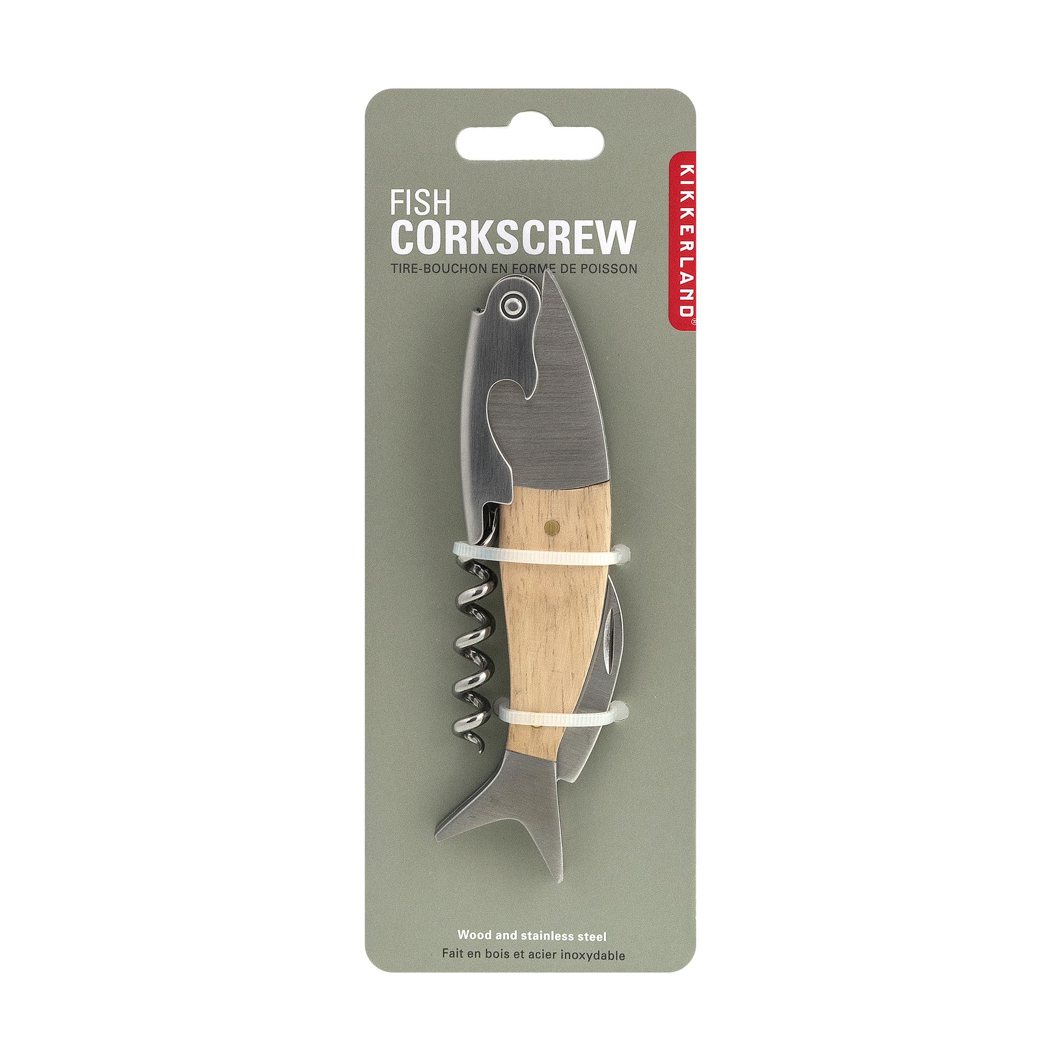 The Lightwood Fish Corkscrew makes opening your favorite beverage a snap with its durable stainless steel construction and a wood grip. It features a cutter, bottle opener, and corkscrew for all in one bottle-opening convenience. The perfect accessory for the avid fisherman to have on hand after reeling in the catch of the day.