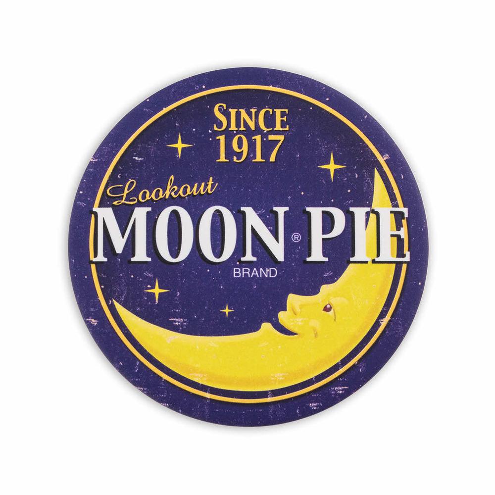 They've been around for a while, yet they are still just as tasty! Show your appreciation for this chewy treat with this MoonPie Round Logo Magnet. Featuring a 3-inch diameter, this round magnet can be attached to fridges, file cabinets, dishwashers, and any other metal surface that could use a personal touch.