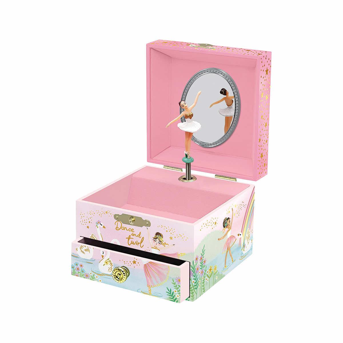 Your favorite princess will love the Musical Dancing Ballerina Jewelry Box from US Toy! This beautiful toy jewelry box features a gracefully twirling ballerina in the main compartment who dances along with music from "Swan Lake." Your child will love storing their treasures in this gorgeous jewelry box, a classic toy that has endured for generations. This charming toy is perfect for aspiring ballerinas!
