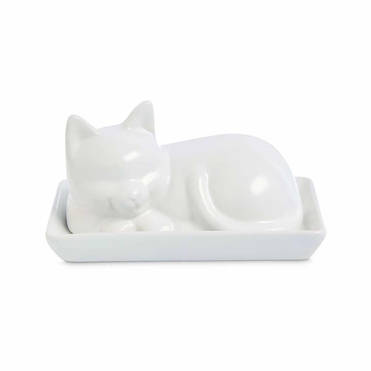 The Porcelain Cat Butter Dish from HIC Kitchen is beautiful and high-quality to add whimsy to your home! This gorgeous porcelain butter dish features a sculpture of a lounging cat on the lid. Ideal for storing and serving any type of butter or margarine, this dishwasher-safe kitchen accessory will bring a smile to anyone at your table. This butter dish is the cat's meow!