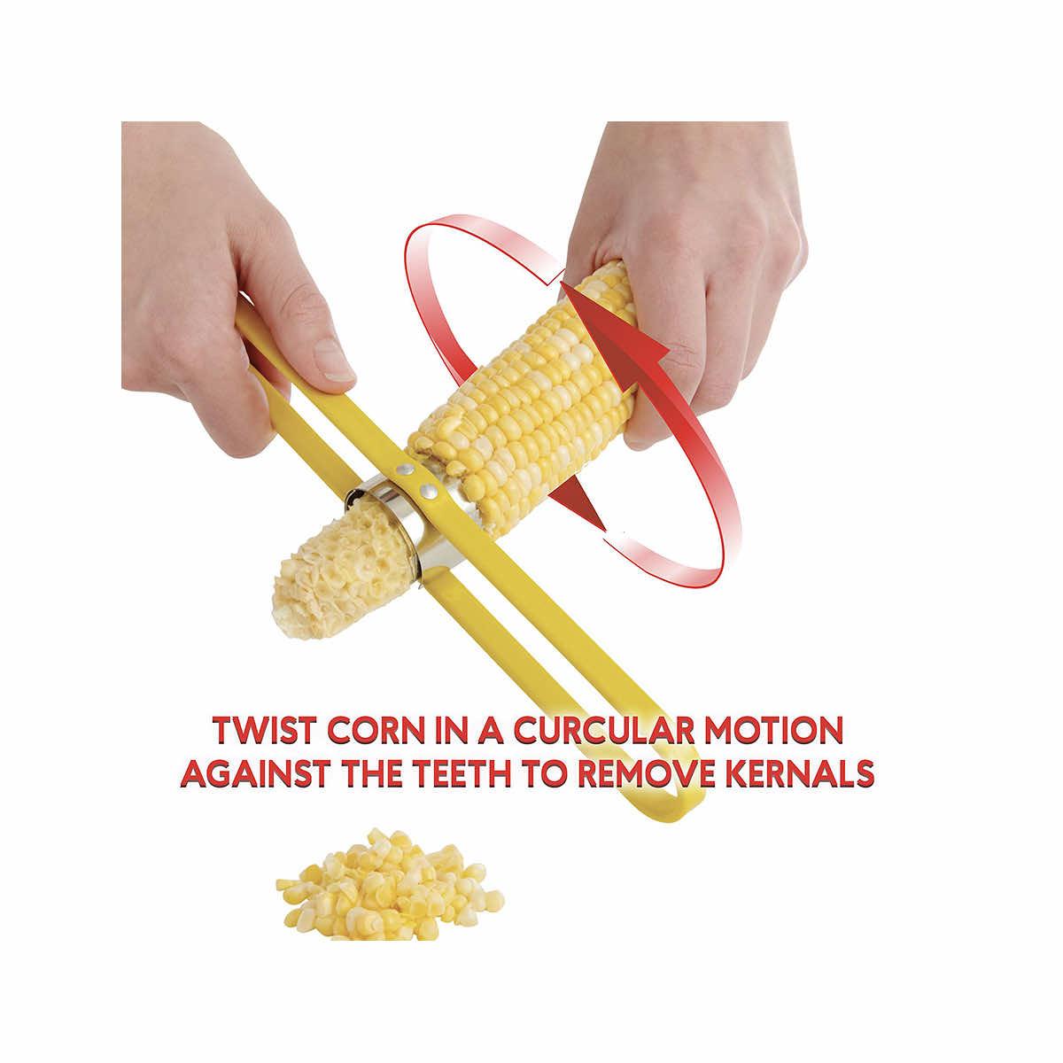 - Sharp curved blades wrap around the cob and remove every delicious kernel in a simple twist; blades easily expand to fit larger ears of corn