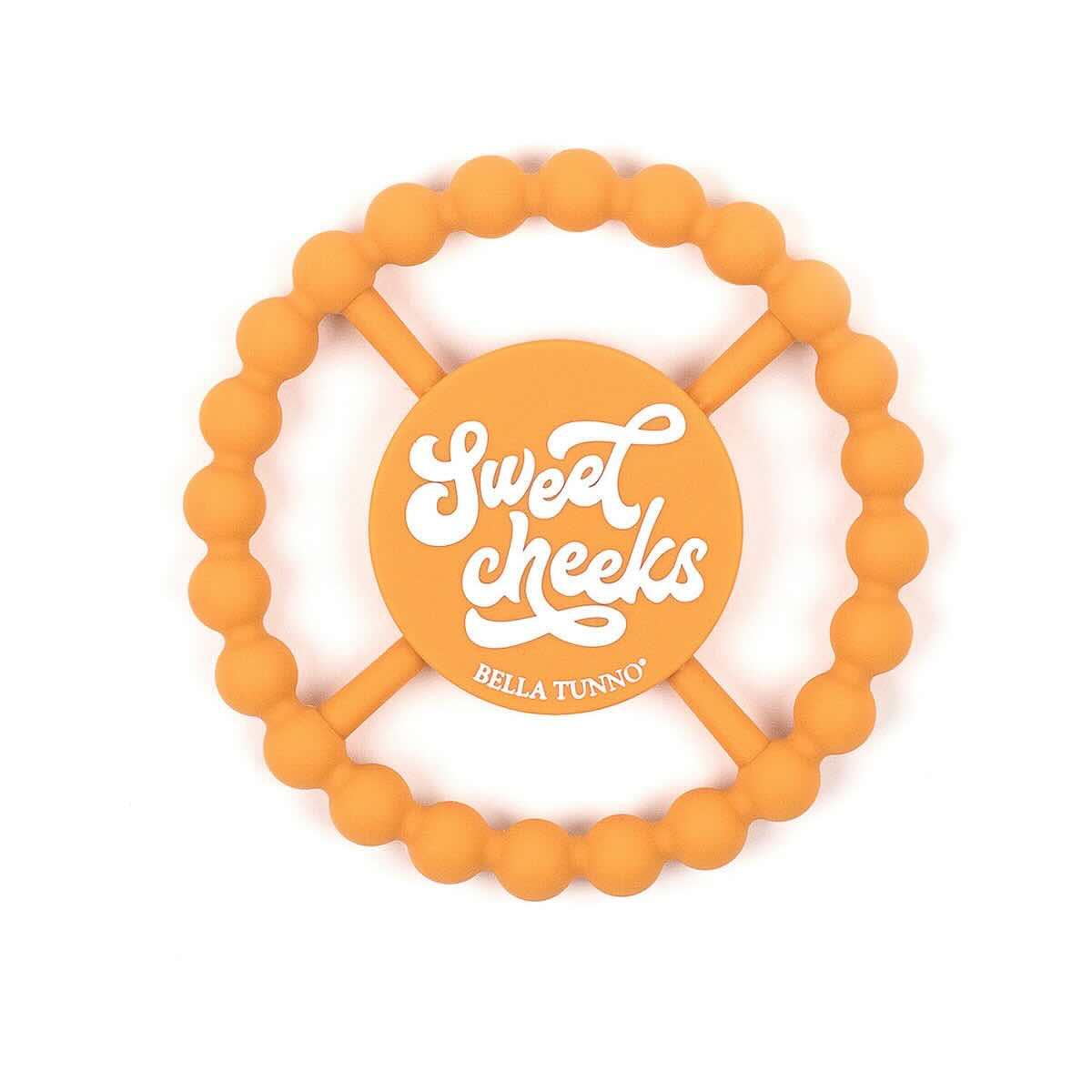 Give their gums the relief they need with the Sweet Cheeks Happy Teether Baby Toy from Bella Tunno! This 4.5-inch silicone teething ring is designed to have an easy grip for little hands, plus it's freezer and dishwasher-safe. Soothe sore gums in style with this darling baby teether!