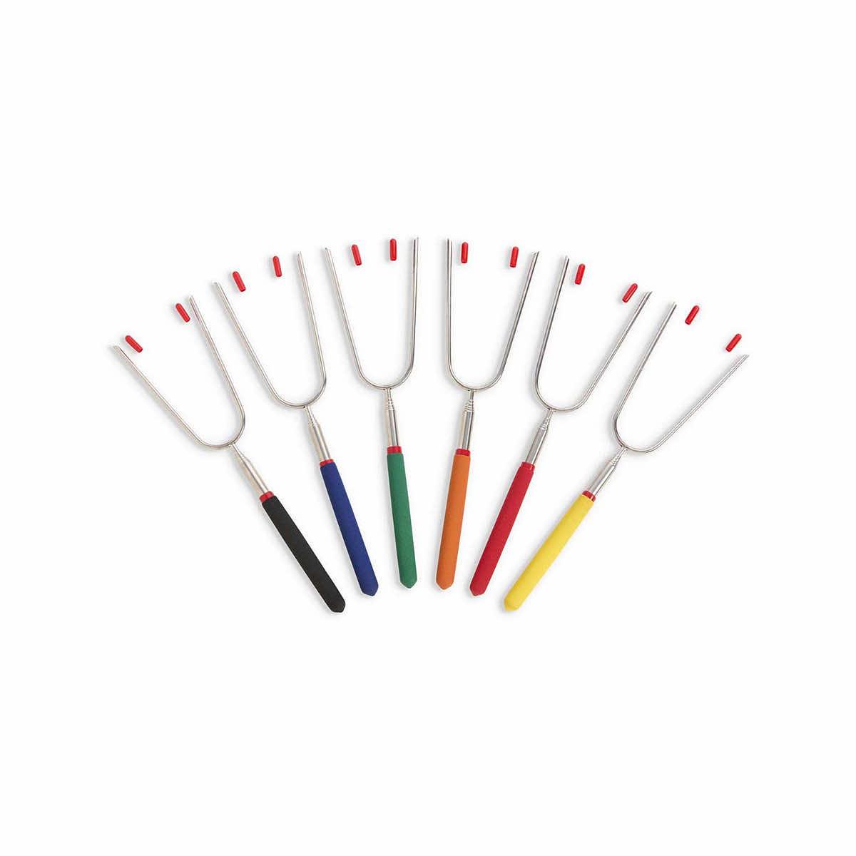The Set of 6 Telescoping Roasting Forks from Harold Imports are your ultimate campfire and BBQ companions, perfect for roasting marshmallows, hot dogs, s'mores, sausages, and more! These durable, high-quality stainless steel roasting sticks extend a generous 10 to 32 inches, ensuring a safe and comfortable distance from the flame while you achieve that perfectly golden roast. Featuring heat-resistant handles for a secure grip, these telescoping forks are essential campfire accessories and make outdoor cooking a breeze. Their compact design allows for easy storage and portability, fitting perfectly into your camping gear. Whether you're enjoying a backyard bonfire, a family camping trip, or a cozy evening by the fire pit, these roasting forks are designed for endless fun and delicious treats.