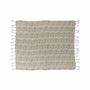 Throw some decorative yet cozy style onto your couch or favorite sitting chair with this Woven Recycled Cotton Blend Printed Throw from Creative Co-Op. This beautiful throw is made from a soft blend of cotton and polyester and includes charming flower details with braided pom pom tassels. It's a pleasing addition to your living room space and comfy wrap when things get chilly.