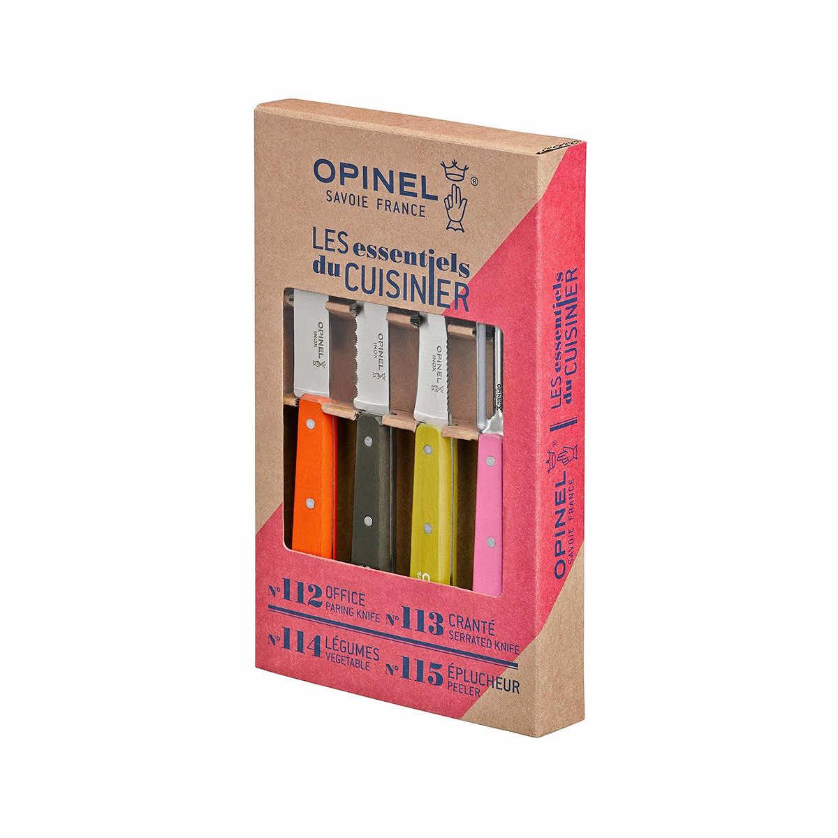 The Essential Small Kitchen Knife Set from Opinel USA is an excellent addition to any kitchen. This cutlery set is a workhorse for food prep areas everywhere. Featuring a paring knife, vegetable knife, serrated paring knife, and stationary peeler, it makes the perfect gift for aspiring chefs or home cooks. The wooden handles are varnished for protection against moisture and dirt. These versatile knives are endlessly useful in the kitchen, and the variety of colors will make prepping and cooking fun!