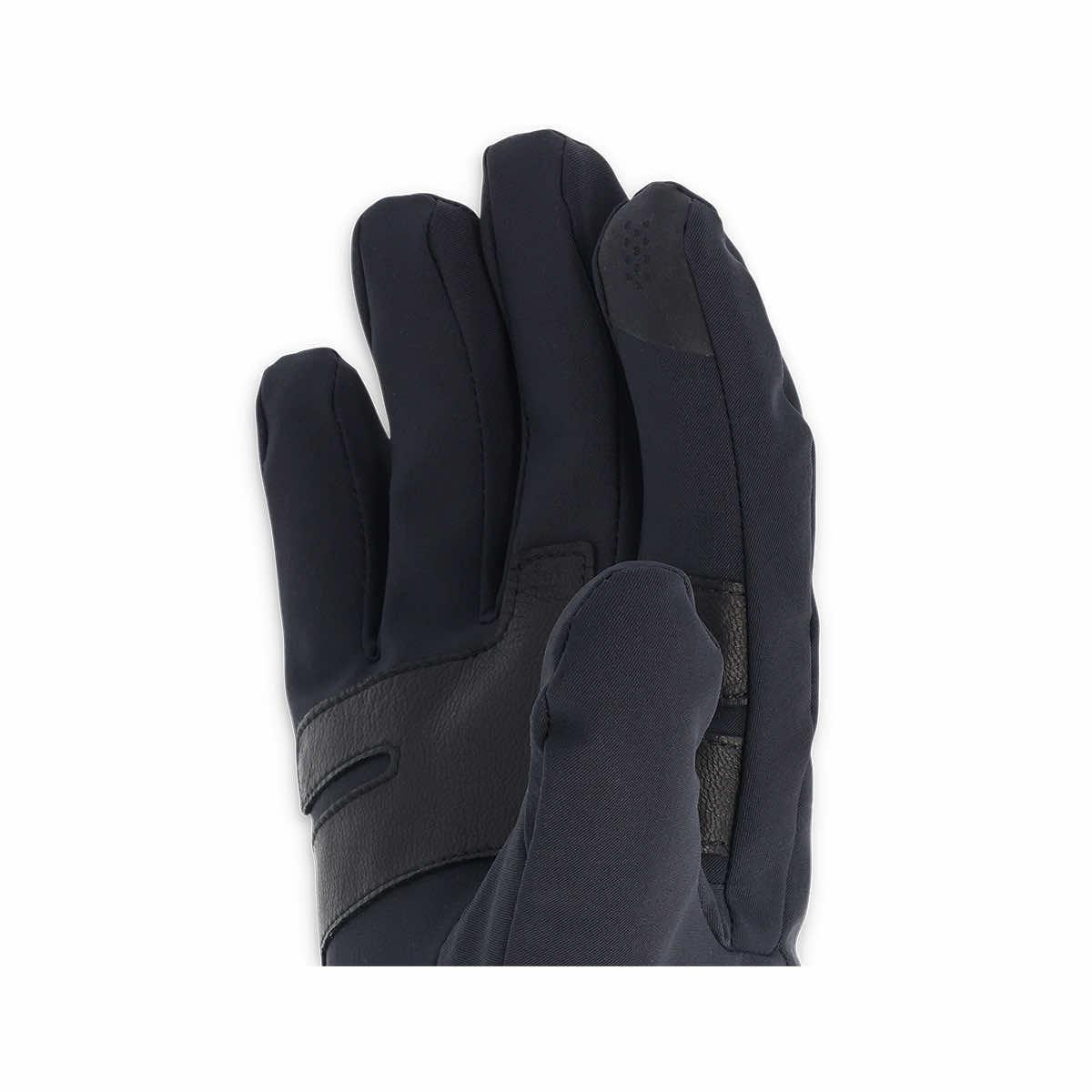 The Men's Sureshot Softshell Gloves are the ultimate all-around glove for keeping hands warm and dry while staying connected. They feature a 2-way stretch woven fabric that is water resistant and breathable, ideally engineered for various activities and weather conditions. The EnduraLoft™ insulation keeps hands warm without bulk, while the ActiveTemp™ treatment regulates body temperature. The palm of the gloves features goat leather overlays for added durability, and the rib knit stretch gusset at the cuff provides a snug and comfortable fit. These gloves are also touchscreen compatible for smartphone use during wear. Perfect for any adventure, whether hiking, climbing, or running to the market, the Sureshot Softshell Gloves are a welcome winter essential.