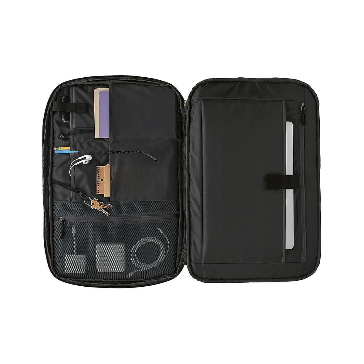 - A padded, stowable hip belt takes weight off the shoulders in backpack mode and doubles as the shoulder strap in briefcase mode