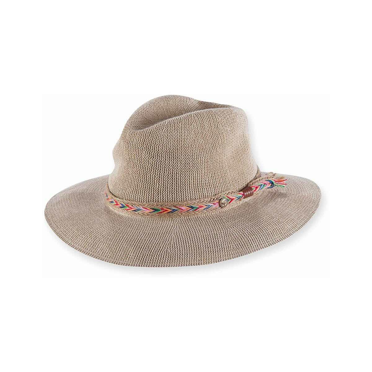 - Multicolored, woven hatband