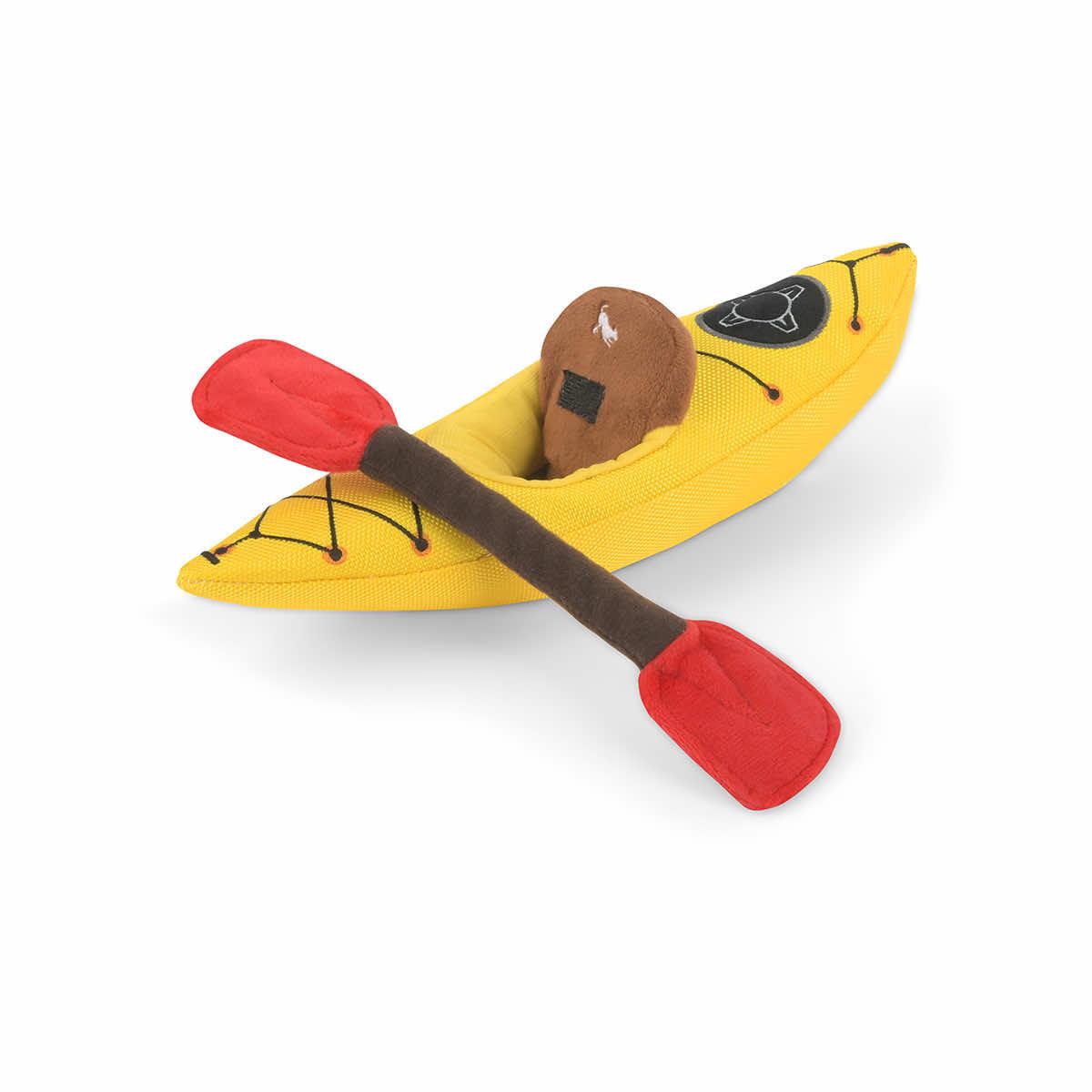 Inspired by P.L.A.Y.'s beloved office dog and head product tester Corbin and his love of the great outdoors, the Camp Corbin K9 Kayak Dog Toy was born and is ready for play. Now your furiends can actually sit starboard on the boat and have a chew while they're at it. Featuring hand-made craftsmanship, the K9 Kayak offers a double-layer exterior and reinforced stitching for extra durability so your furry Bark Rangers can enjoy their love for toys and the outdoors anywhere they sniff!