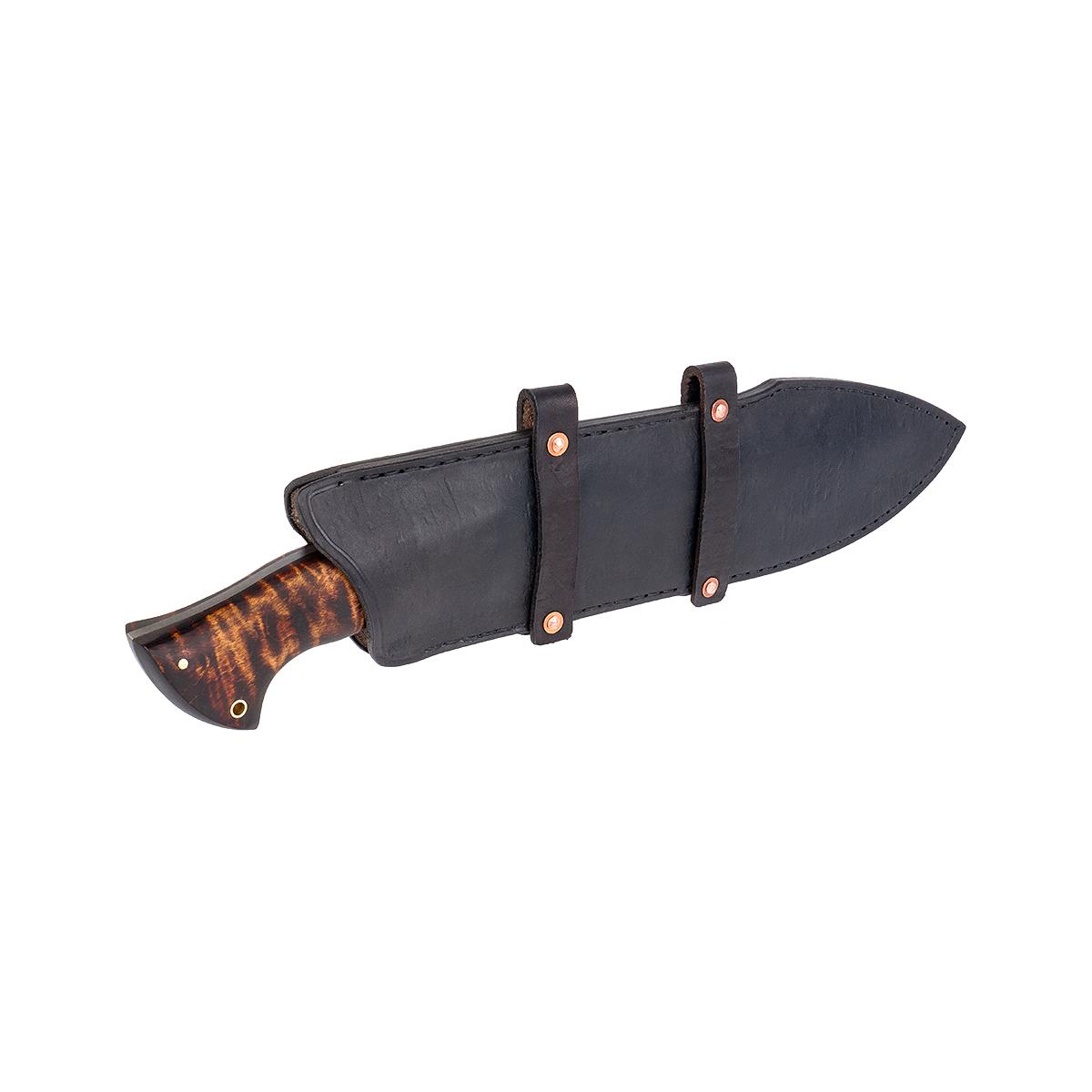 The Hellbender Knife from Primitive Woodsman is a true bushwacking and backcountry blade that will be a trusted favorite for many expeditions to come. This knife features a 10-inch blade made from 80CrV2 high carbon steel. The Curly Maple handle provides a comfortable hand feel with a secure grip to tackle any project. The leather sheath will protect your tool and offers safe storage when not in use. Plan your backcountry adventures accordingly and make sure the Hellbender Knife has a spot in your pack!