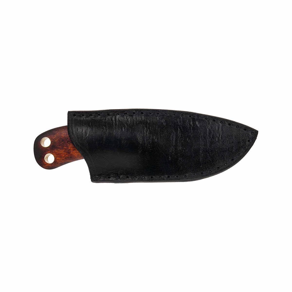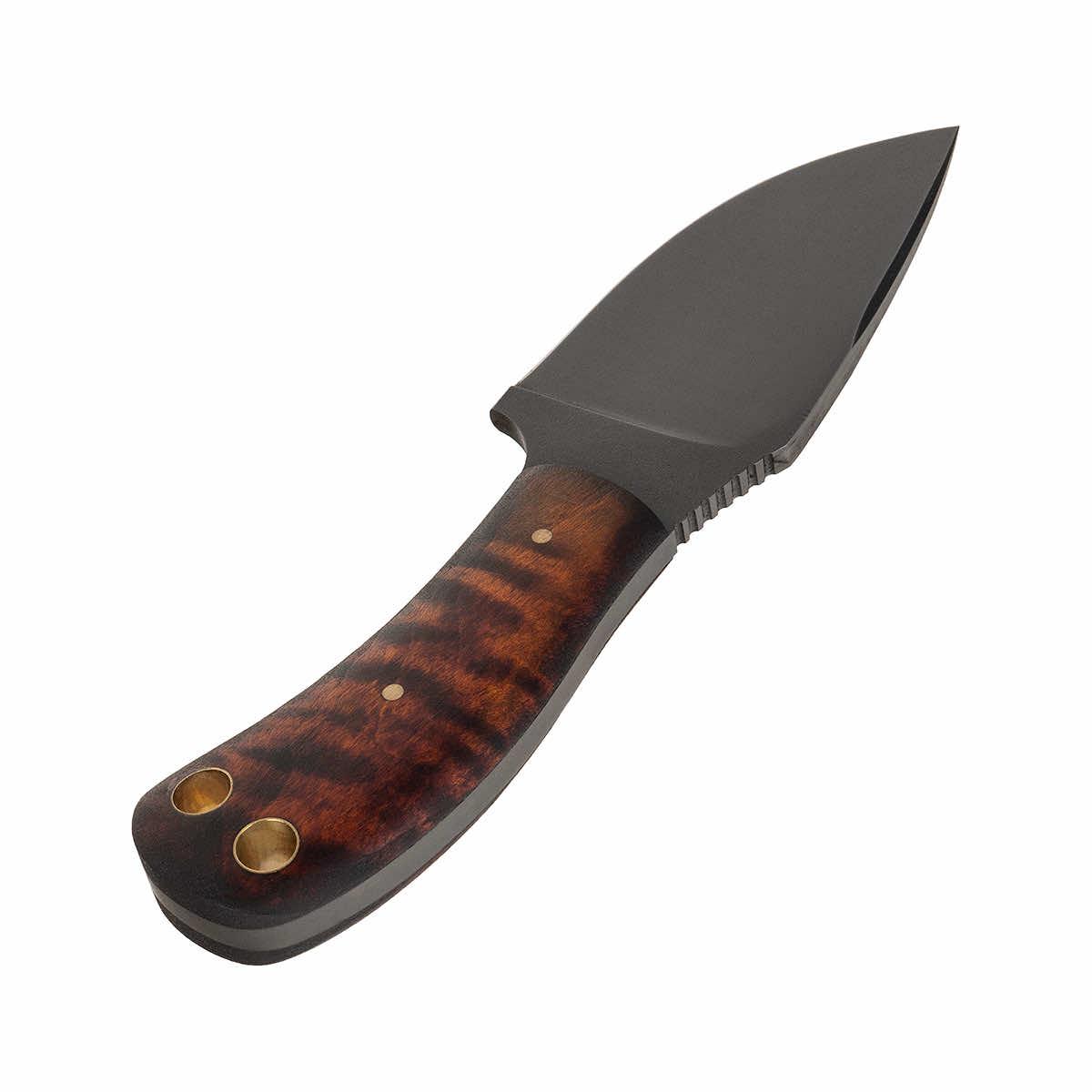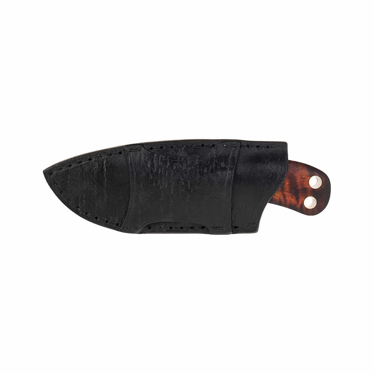 The Scout Knife from Primitive Woodsman is designed to be the workhorse for a lifetime of exploration. The 3.5-inch blade is made of .195-inch 80crV2 high carbon steel combined with a flat grind and a black oxide finish providing a durable tool in the backcountry, kitchen, or anywhere else you need a go-to fixed blade. The 7.75-inch overall length and the full tang craftsmanship offer unmatched versatility in the realm of daily use. Not only does the blade hold an incredible edge, but you also get a secure grip thanks to the elegant, curly maple handle. Keep your gear, yourself, and the Scout Knife safe and situated with a leather sheath.