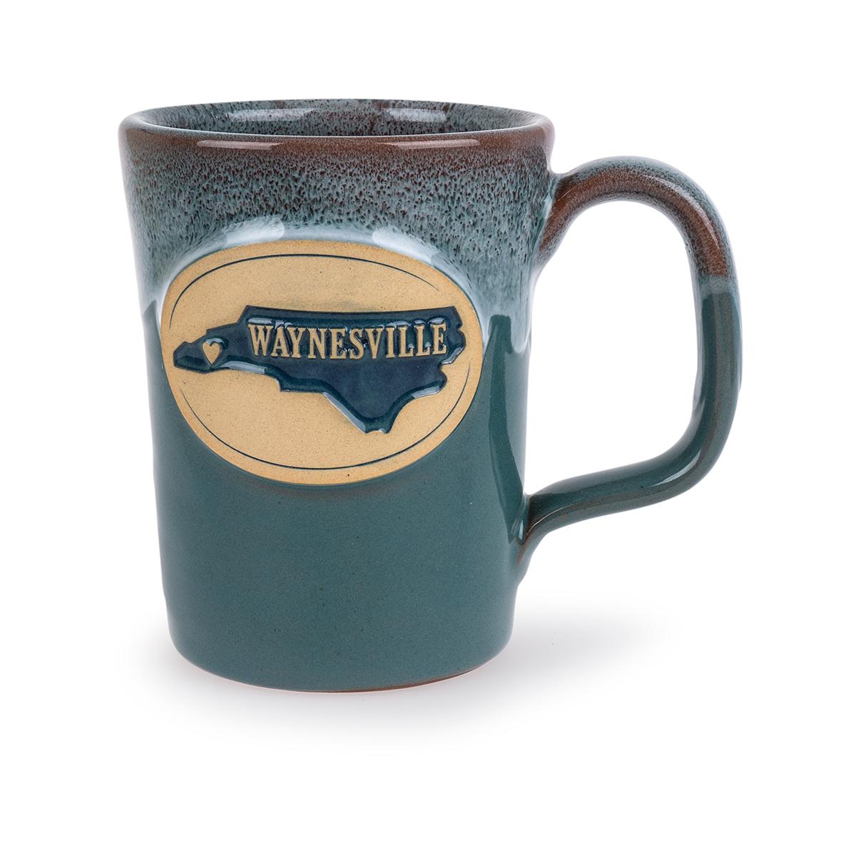 Take in a long sip of something hot from this beautiful, handcrafted mug! Emblazoned with the shape of the Old North State, this gorgeous stoneware coffee cup will remind you of Waynesville, North Carolina every time you enjoy a beverage. This stunning mug was hand-thrown in the USA with care to be dishwasher and microwave safe, so the only thing you need to worry about with this piece is prompt refills!