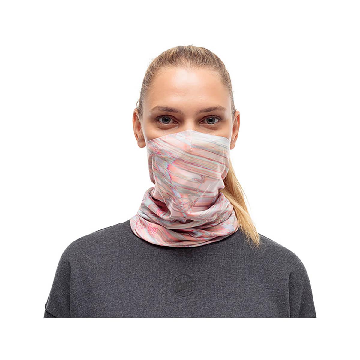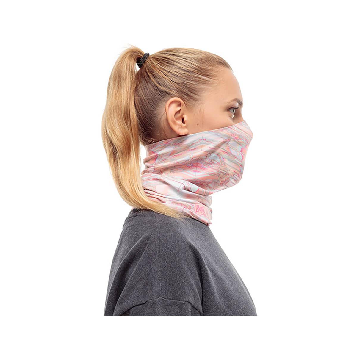 The Filter Tube feels and fits like your favorite BUFF product. Designed with a 3-layer BUFF replaceable filter that blocks with 98% bacterial filtration efficiency, staying put in a built-in antimicrobial-treated mesh pocket, and changes out easily. Ergonomically designed with 95% recycled REPREVE performance fabric and a 4-Way ULTRA STRETCH fit easily covers your nose and mouth without feeling claustrophobic or clammy. Simply pull it up and down as needed, no rearranging required.