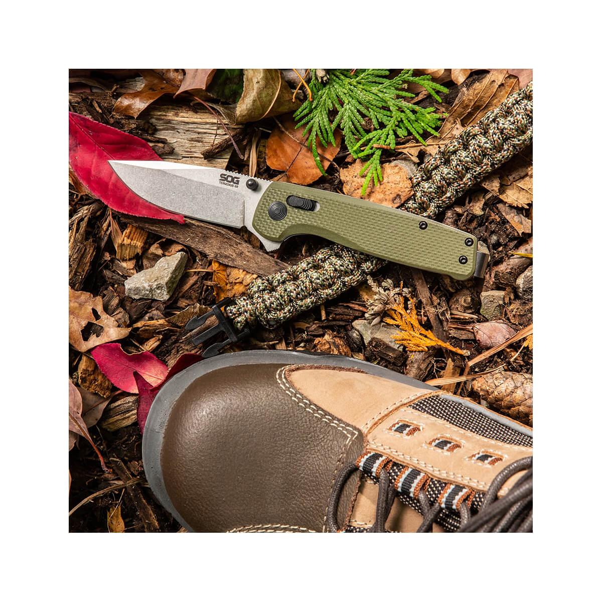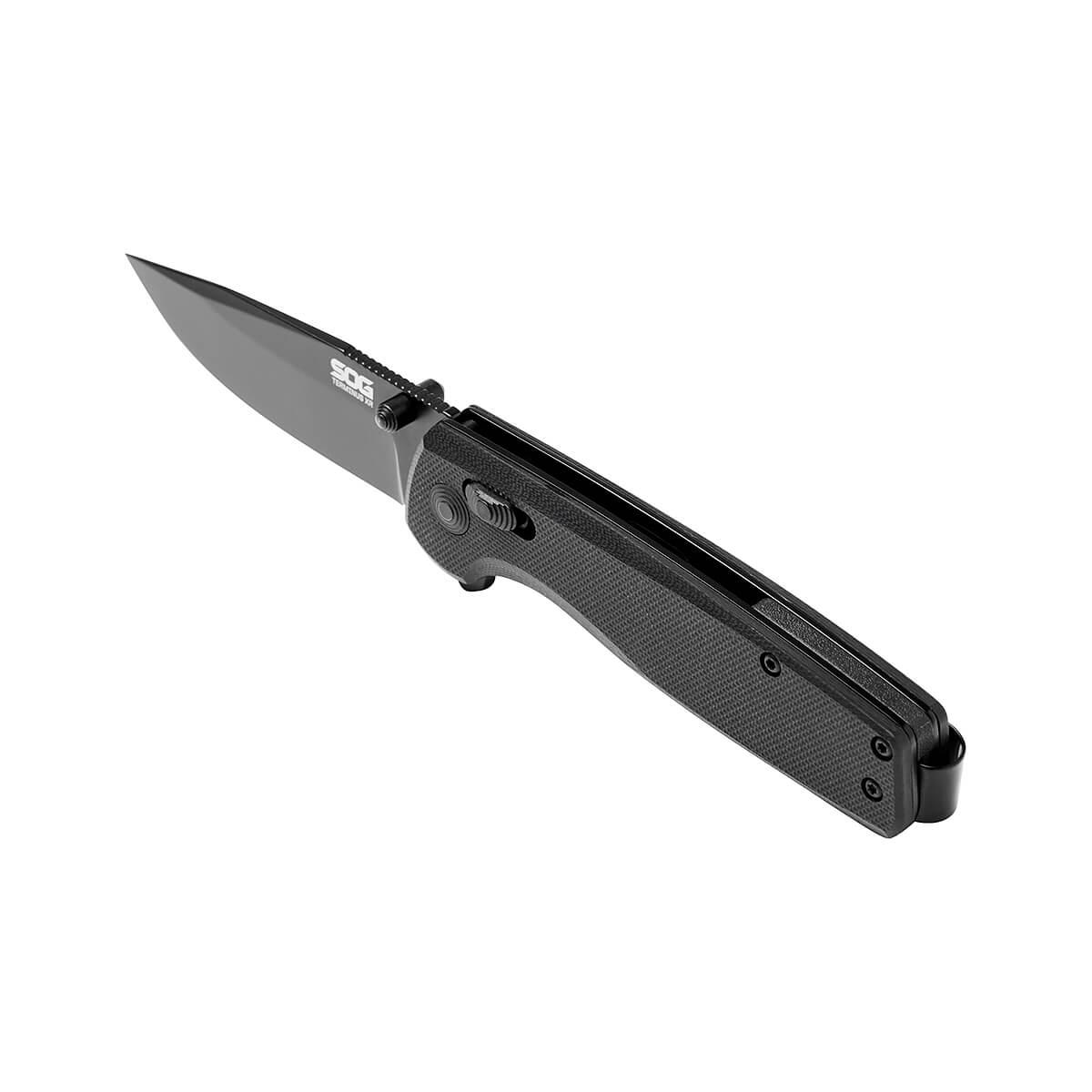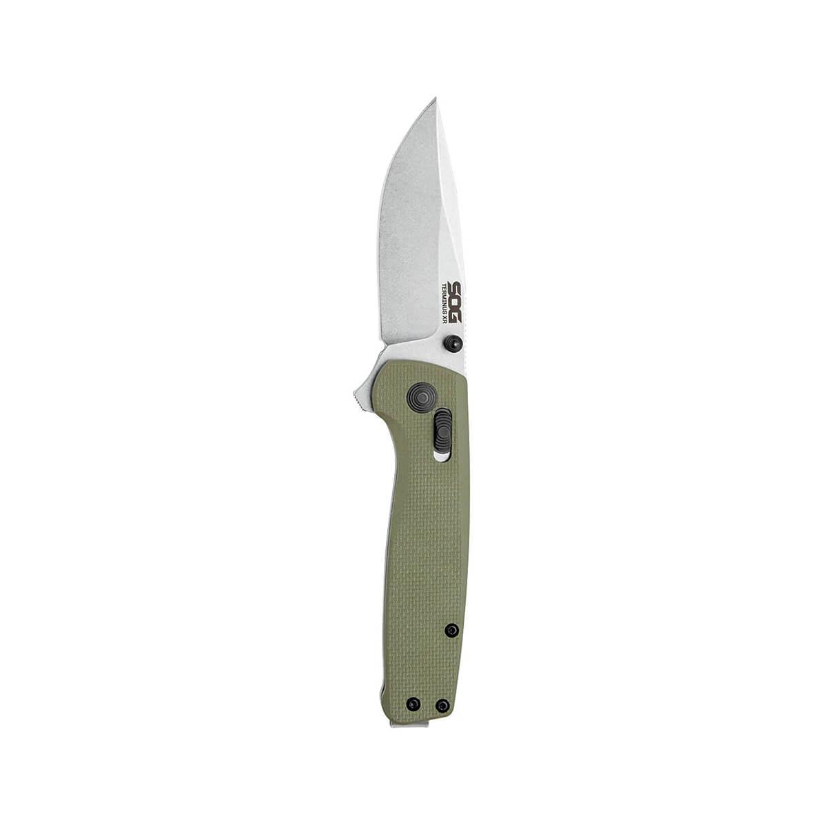 The Terminus XR G10 from SOG is crafted for those looking for something a little more rugged. Stripped, back, straightforward, clad with an honest G10 handle and stone-washed hardware. The XR locking mechanism is snappy and adjusts over lifespan of the knife. The D2 steel blade features high toughness and wear resistance. The knife is fully ambidextrous, with a swappable belt clip for left or right wear. Three different opening methods: thumb stud, XR Lock, and kick. The Terminus XR is setting a new bar for EDC.