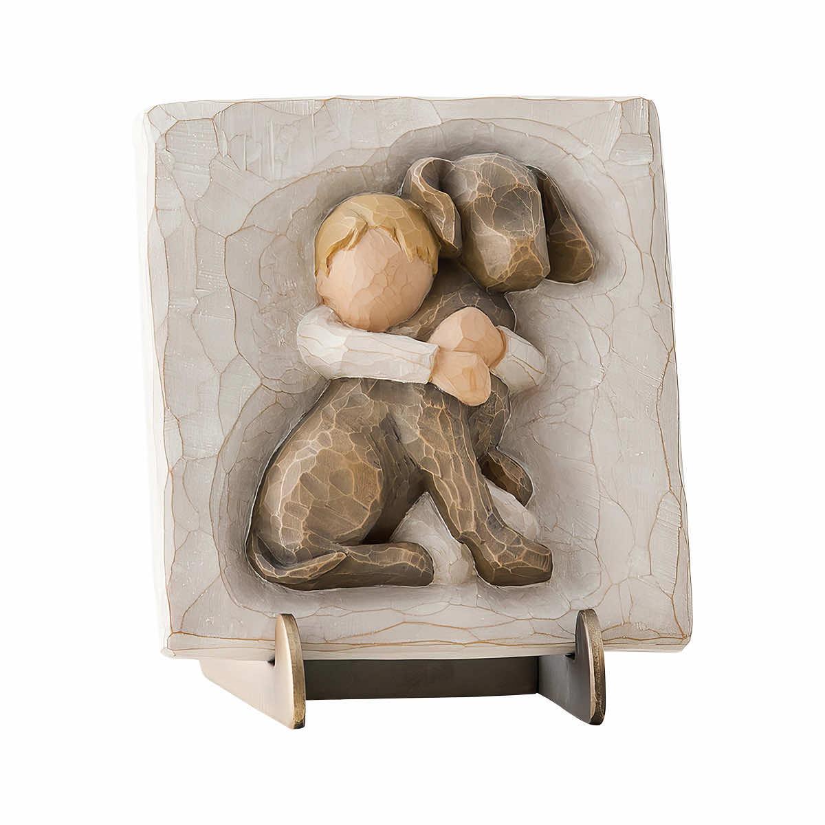 The Hug Plaque from Willow Tree is an expression of friendship and love of dogs. Great on a child's bedroom wall or as a gift for an animal lover, this hand-painted plaque was carved with care to represent the love and comfort that comes from the pets in our lives.