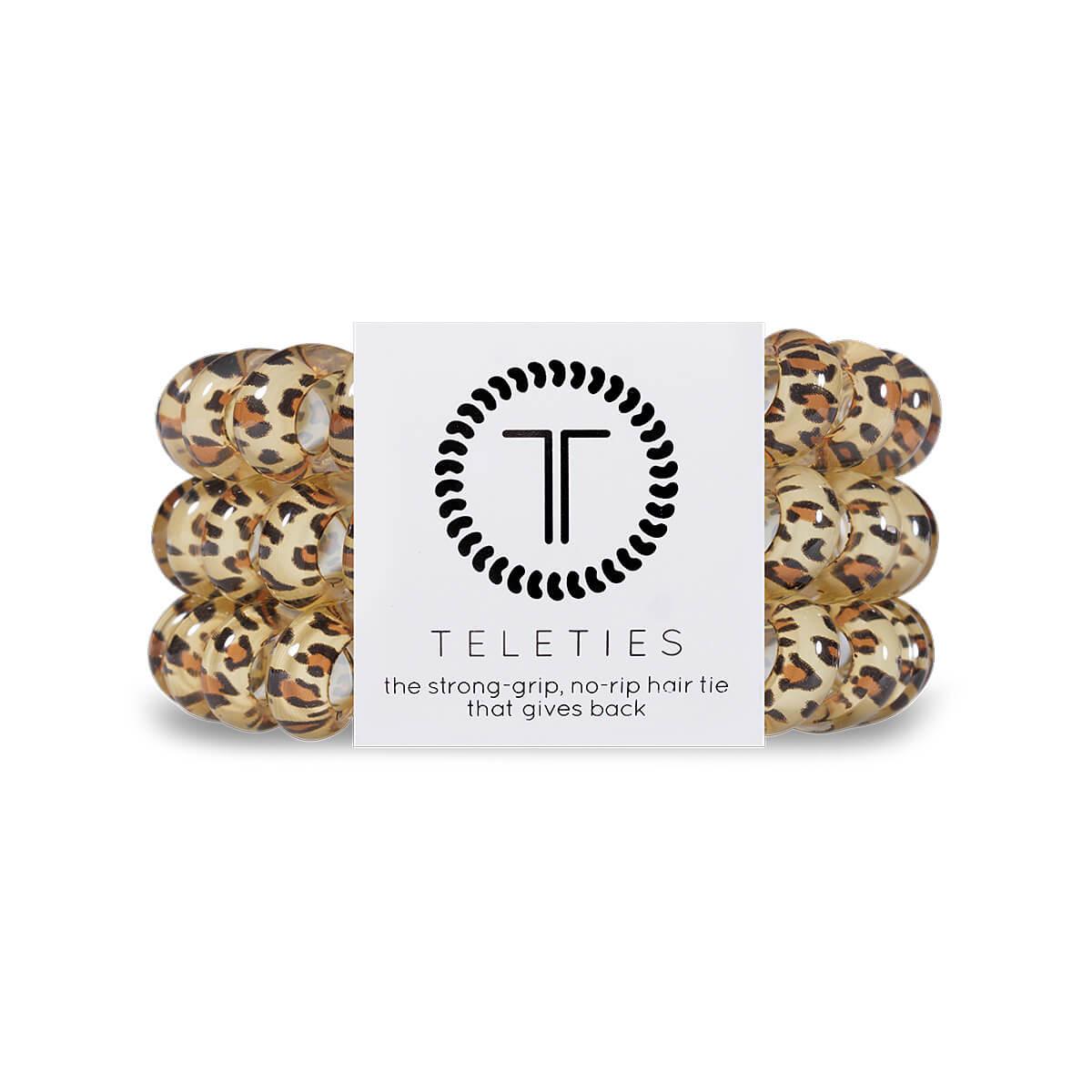 Hold your hair and enhance your style with the Leopard Large Hair Ties from TELETIES. You'll love the ultimate replacement for traditional hair ties... The strong grip, no rip hair tie that doubles as a bracelet. Strong, pretty, and stylish, TELETIES are designed to withstand everyday demands while taking your look to the next level. In your hair or on your wrist, a functional fashion accessory is always within reach.