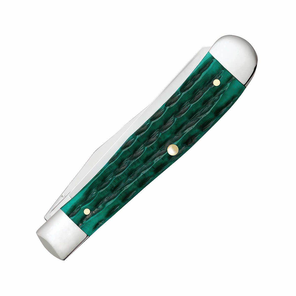 The Crandall Jig Jade Bone Trapper Knife from Case Knives features a distinctive Jade Bone with extra Pocket Worn finishing and easy-sharpening carbon steel blades that will make this knife feel like a familiar old friend who is always willing to lend an extra hand. Trapper Knives pack two blades in a convenient but very practical pocket knife. The Clip-style blade is a multi-purpose blade for detail work. The Spey blade is an all-purpose utility blade. This knife is constructed with Carbon (CS) steel which has edge-holding ability and easy re-sharpening. Carbon steel is less resistant to rusting, pitting, and discoloration than stainless steel. Case recommends keeping a thin film of oil on the blade to maintain the finish. This ensures that your knife will be around for future generations to enjoy.